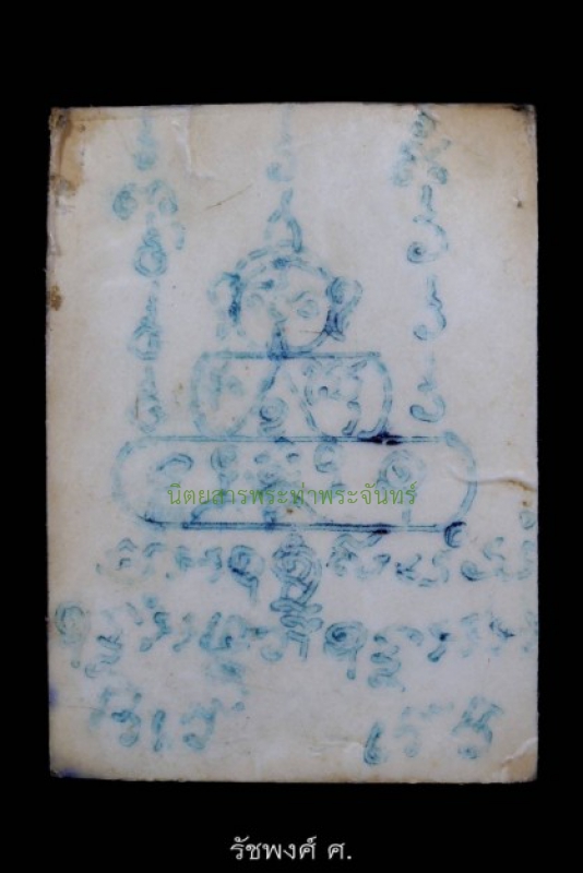 รายละเอียดพระ รูปนั่งเต็มองค์หลังใบโพธิ์ขอบลายธงชาติ หลวงพ่อคง วัดวังสรรพรส จังหวัดจันทบุรี รูปภาพสวยงามตามกาลเวลาครับ ด้านหลังจารปากกาลงยันต์ตุ๊กตาเทพพนม ขนาดห้อยคอกำลังสวยงามครับ อีกหนึ่งรุ่นของรูปภาพที่น่าใช้บูชาของหลวงพ่อคง สุวัณโณ ที่ทันหลวงพ่อคง และมีประสพการณ์ ใบนี้สวยเดิมตามกาลเวลาไม่มีชำรุดใดๆ แถมยังได้เป็นองค์ดาราหน้า 262 หนังสือฉบับสมบูรณ์ "ประวัติและวัตถุมงคล หลวงพ่อคง วัดวังสรรพรส (ฉบับสมบูรณ์)" และองค์​นี้ยังเป็นองค์ดาราในทำเนียบรุ่นของหลวงพ่อคงใน​ Wed-pra.​ ตัวกรอบเงินยังอยู่ครบ น่าใช้บูชามากครับ 這是一尊龍婆孔全身坐像,出自尖竹汶府旺山帕羅寺,佛像周圍環繞著菩提葉,菩提葉邊緣飾以泰國國旗圖案。考慮到其年代,這尊佛像依然精美。佛像背面刻有手刻的祈禱神符。尺寸適中,可作吊飾配戴。這是龍婆孔蘇萬南(Luang Pho Khong Suwannano)的另一尊備受追捧的佛牌,與他同時代,以其強大的功效而聞名。這尊佛牌保存完好,雖歷經歲月洗禮卻絲毫未損,並在該書完整版第262頁被列為明星佛牌。《龍婆孔佛牌史及佛牌,瓦旺桑帕洛寺(完整版)》中的這尊佛牌也是Wed-pra網站上龍婆孔佛牌目錄中的重點展品。銀框保存完好。非常適合供奉和佩戴。 A full-body seated image of Luang Pho Khong, Wat Wangsanphrarot, Chanthaburi Province, with a Bodhi leaf bordered with the Thai flag pattern. The image is beautiful considering its age. The back has a hand-inscribed Yantra of a praying deity. A beautiful size for wearing as a pendant Another highly sought-after amulet of Luang Pho Khong Suwannano, contemporary with him and known for its efficacy. This piece is beautifully preserved, showing no damage despite its age, and is featured as the star amulet on page 262 of the complete edition of the book "The History and Amulets of Luang Phor Kong, Wat Wangsanphraros (Complete Edition)" This particular amulet is also a featured piece in the Luang Phor Kong catalog on Wed-pra. The silver frame is still intact. Highly suitable for worship and use. หากต้องการออกใบการันตีของนิตยสารท่าพระจันทร์ในชื่อท่าน ยินดีดำเนินการจัดส่งตรวจสอบเก๊-แท้ให้ครับ รับประกันแท้ตลอดชีวิต 0824649987 กอล์ฟ รัชพงศ์
