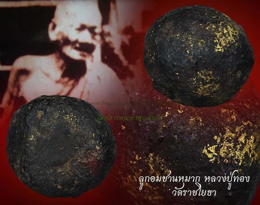 | รายละเอียดพระ | ลูกอมหลวงปู่ทอง วัดราชโยธา กทม ลูกอมของท่านมี 2 แบบ ที่เล่นหาเป็นมาตรฐาน คือ ชานหมากล้วน และ ชานหมากผสมปูนฉาบฝากุฏิของหลวงปู่ ปูนที่ว่านี้ทำจากขี้เลี่อย ฟางข้าวแห้ง ดินและน้ำอ้อย ผสมแล้วนำไปฉาบฝากุฏิที่ทำด้วยไม้ไผ่ขัดร่อง “” หลวงปู่ทอง ท่านพูดขึ้นว่า ดี จะได้คงทนดี ลูกศิษย์ลูกหาถือเคล็ดตรงนี้ ขูดเอาผงมาผสมกับชานหมากของท่าน ปั้นเป็นลูกอมใช้คุ้มตัว เพราะหลวงปู่ทอง ท่านมีวาจาสิทธิ์ เป็นอย่างมากนั่นเอง ลูกอมที่ผสมปูน จะออกขาว แต่จะเห็นเสี้ยนหมากชัดเจน ทุกถูก แต่จะไม่แข็ง เหมือนลูกอมชานหมากทั่ว ไป ลูกอมของท่านโด่งดังมานานมาก และถ้าตัวจริงได้ยากที่สุด และมีประสบการณ์ ทุกด้านถ้าประพฤติปฏิบัติตัวเองในศีลในธรรม ของท่านเล่ากันมานาน หนังดีกันทุกคน และโชคลาภ ลูกอมของท่านมีชื่อเรียกว่าลูกอมกินไม่หมด คงเป็นเพราะเป็นหมากที่หลวงพ่อทองกินประจำ เข้าทำนองที่ว่า มีกินมีใช้ไม่มีหมดนั่นเอง “ เมื่อใจมีศรัทธา ปาฏิหาริย์จะเกิดขึ้นเสมอ “ |