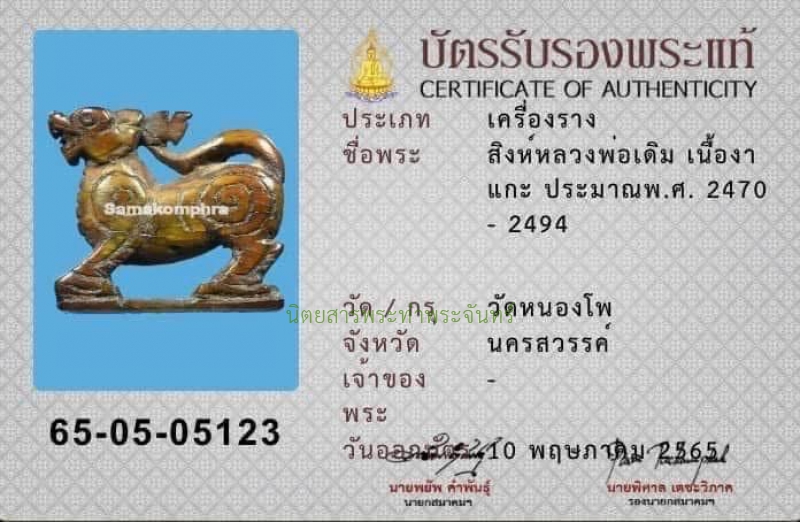 | ชื่อพระ | สิงห์หลวงพ่อเดิม |