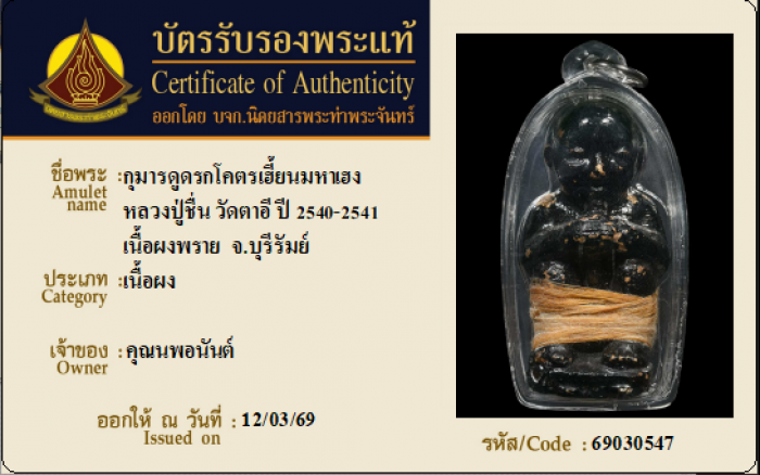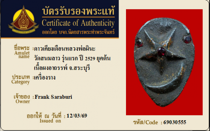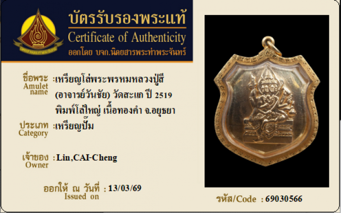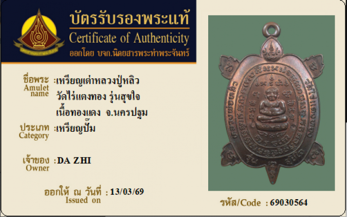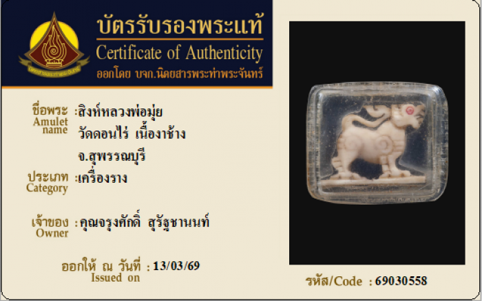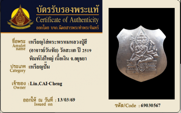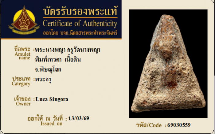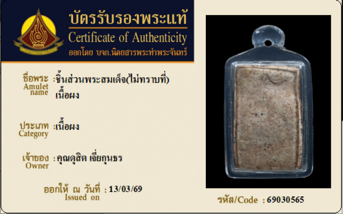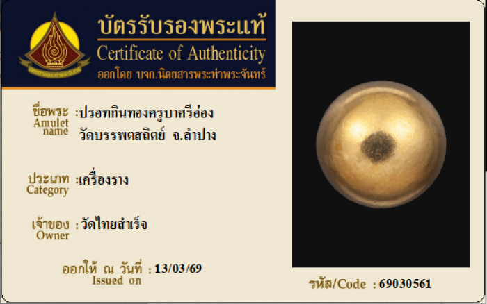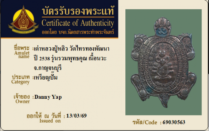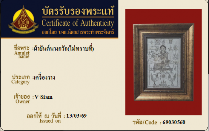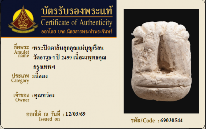 ค้นหาใบการันตีพระแท้