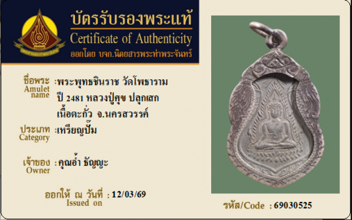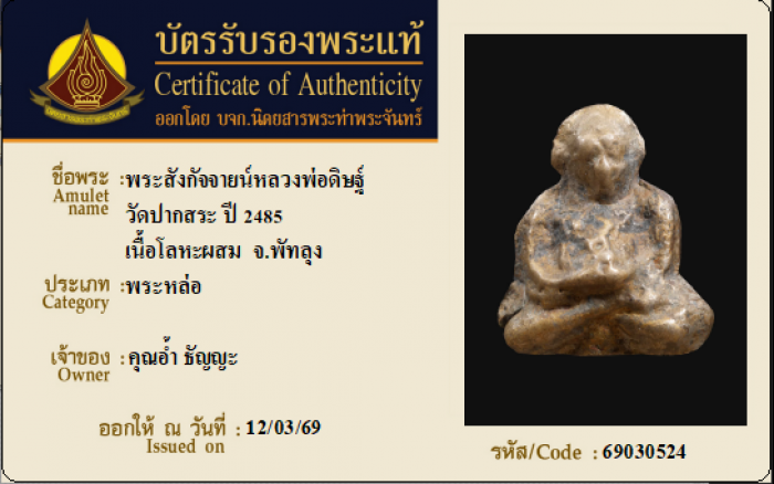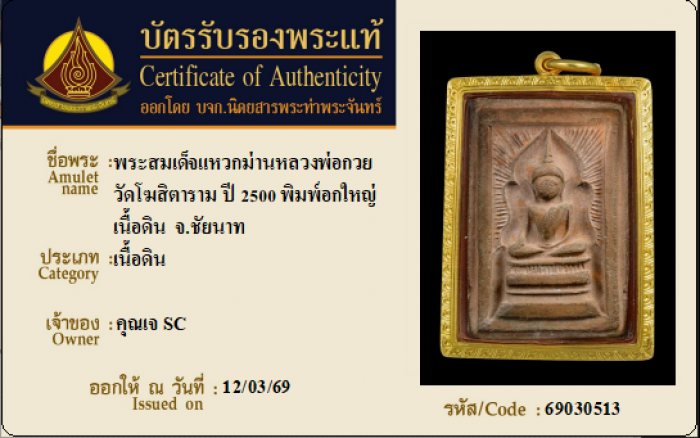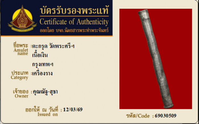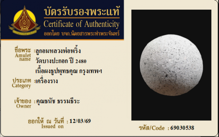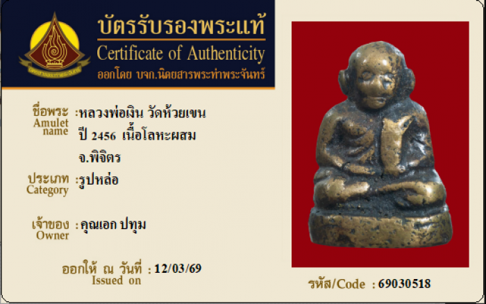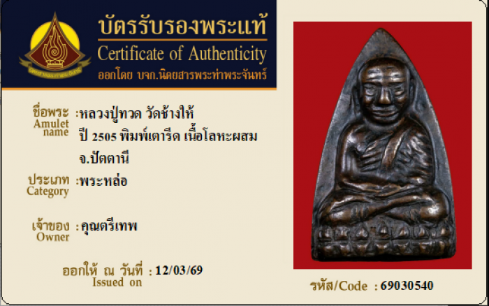 ค้นหาใบการันตีพระแท้