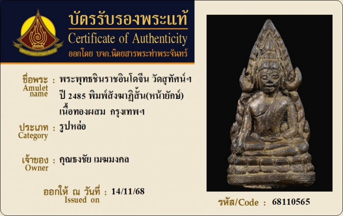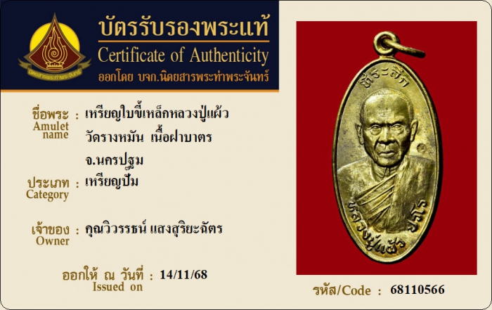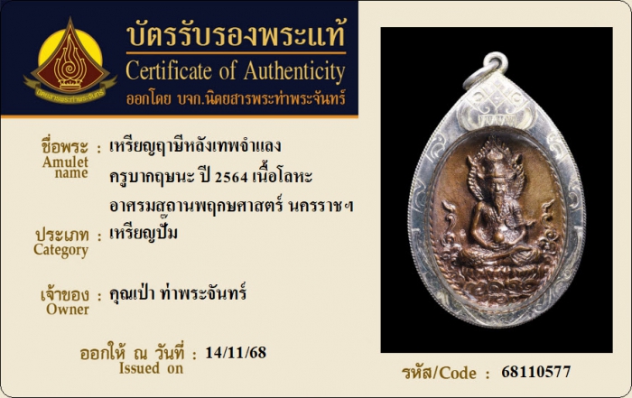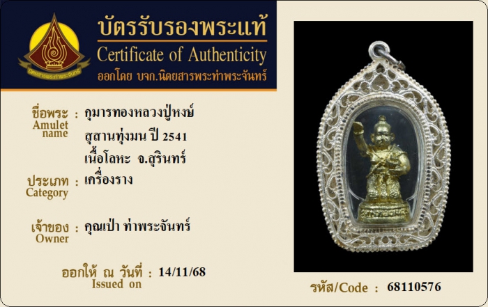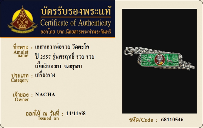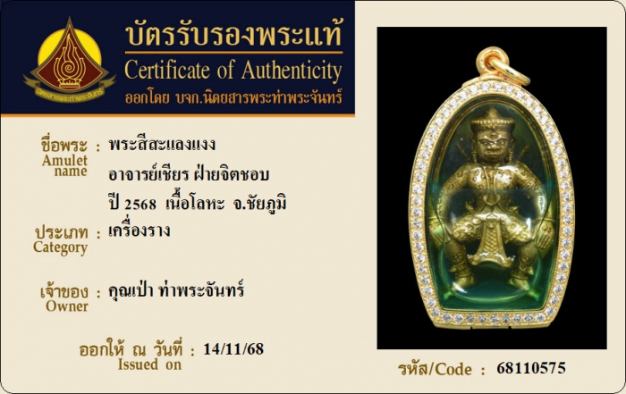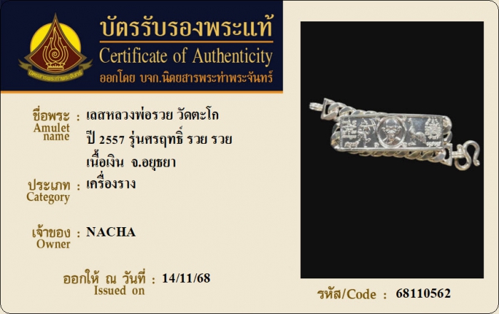 ค้นหาใบการันตีพระแท้