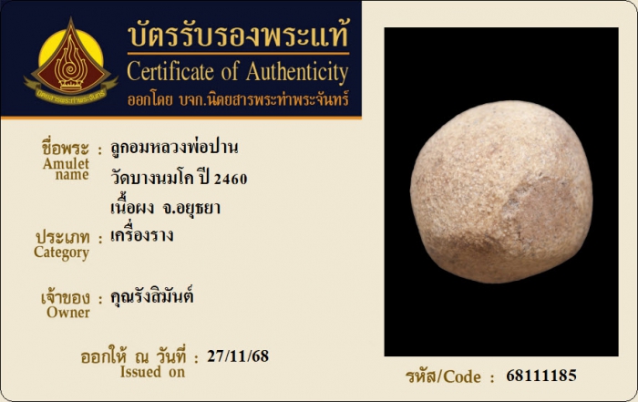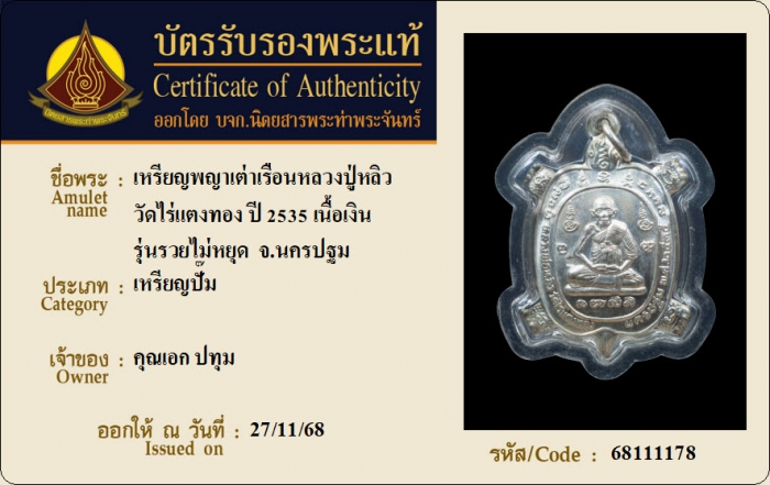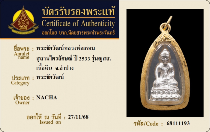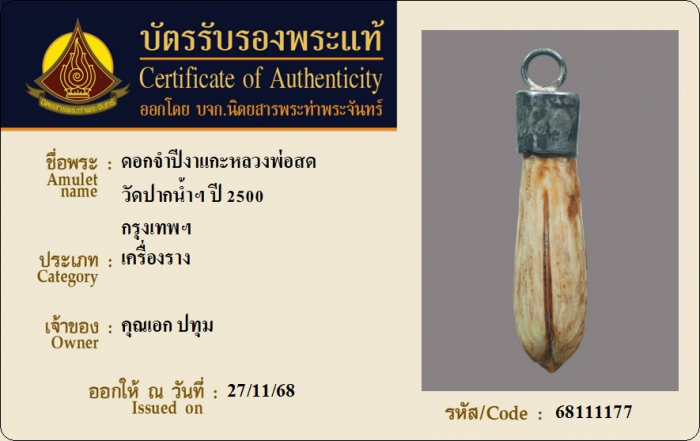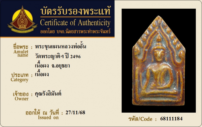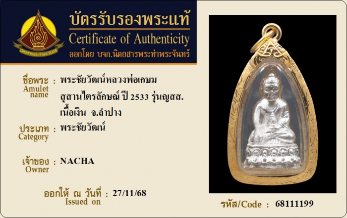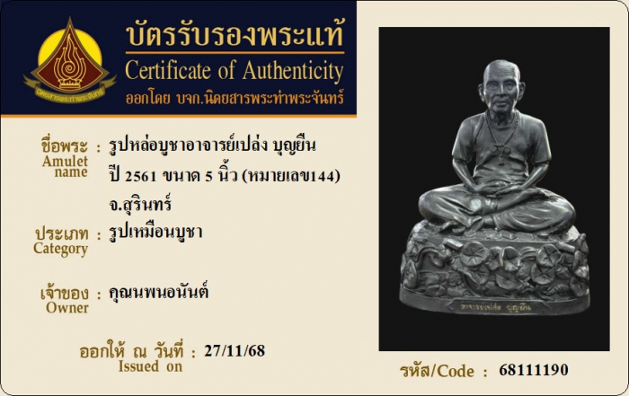 ค้นหาใบการันตีพระแท้