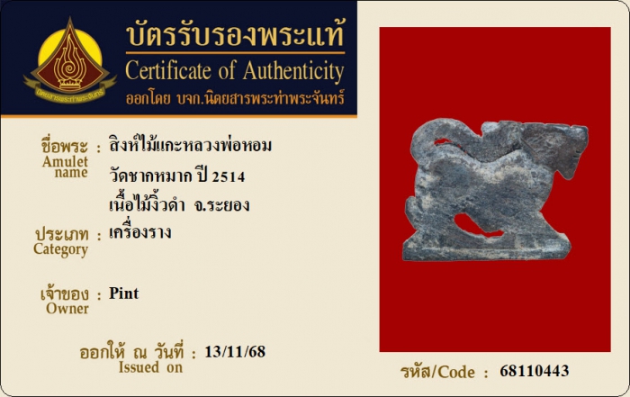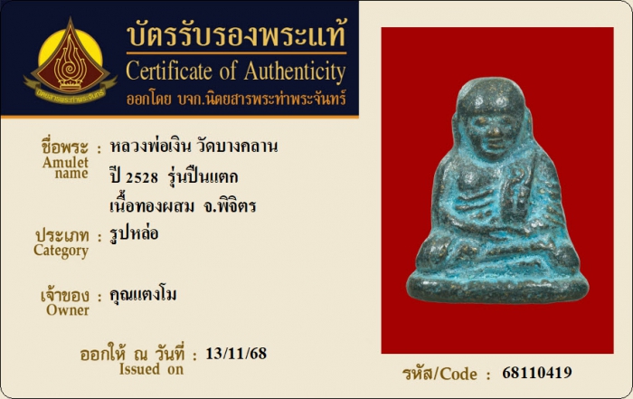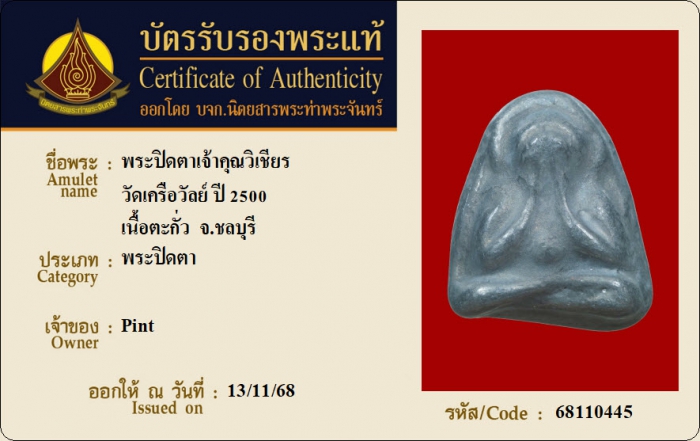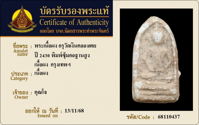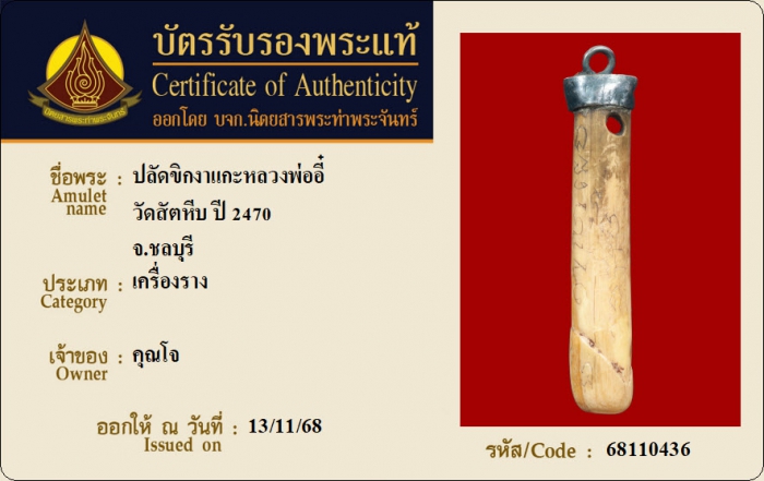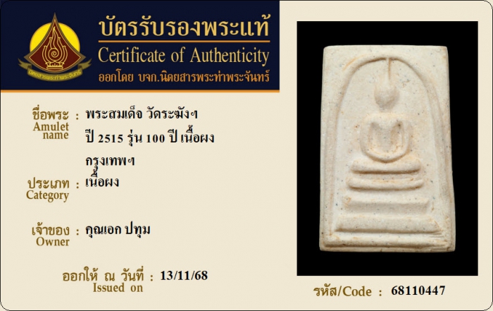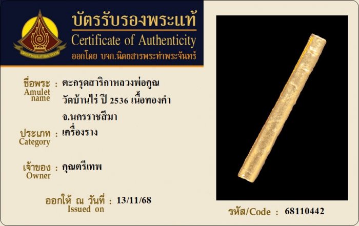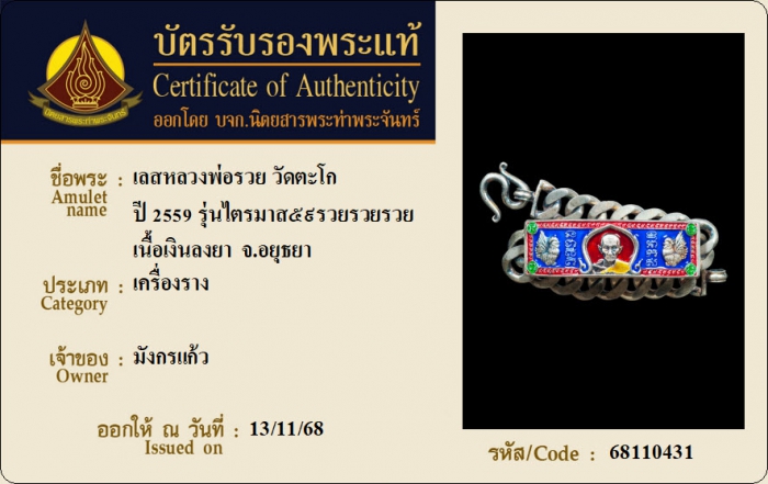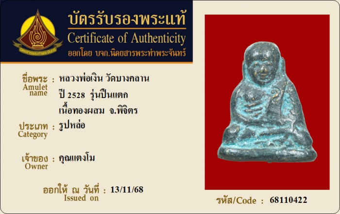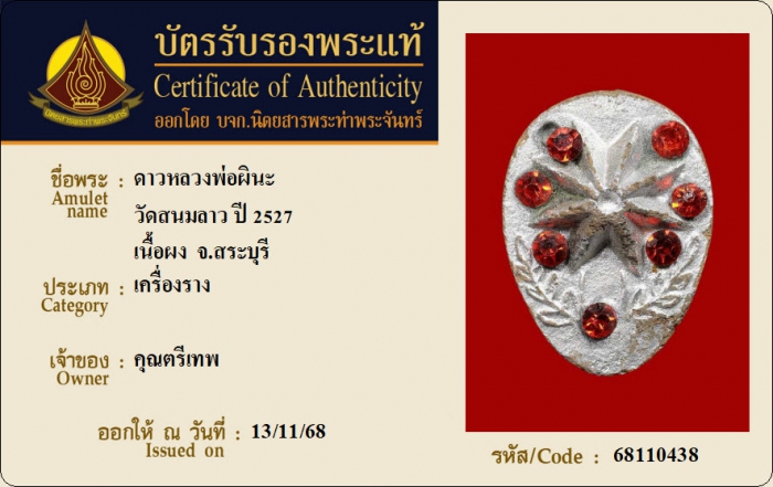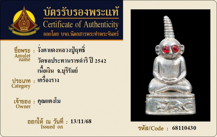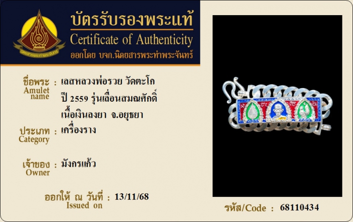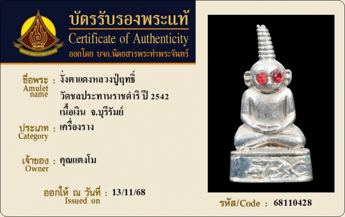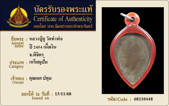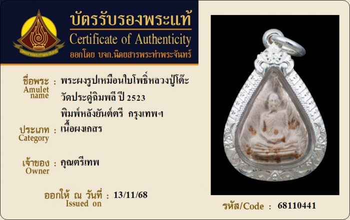 ค้นหาใบการันตีพระแท้