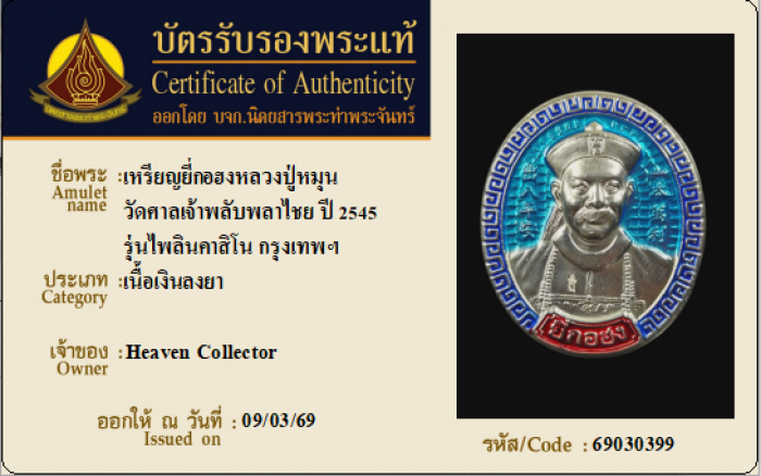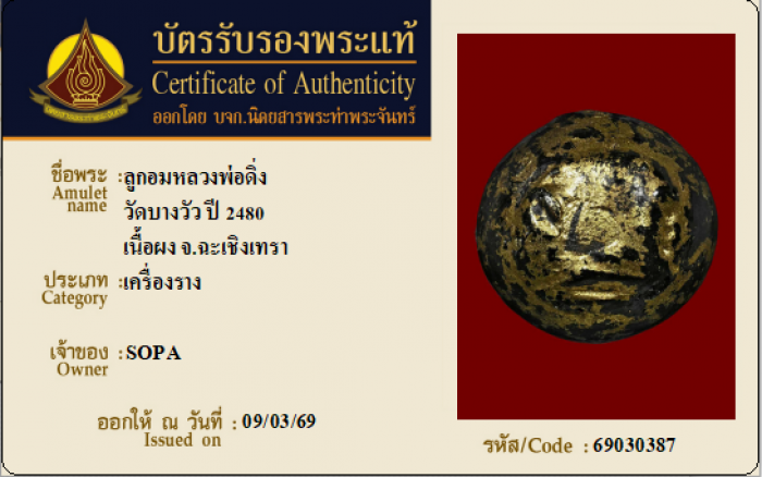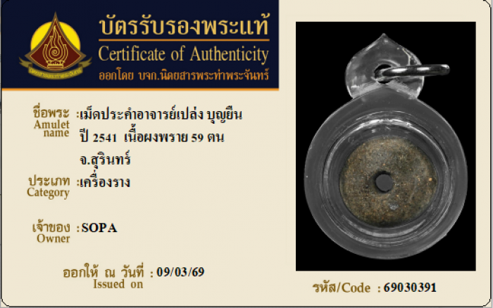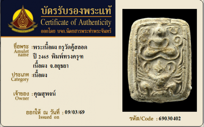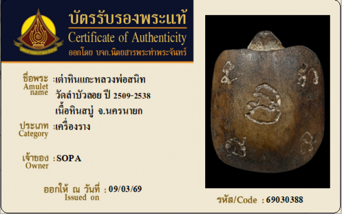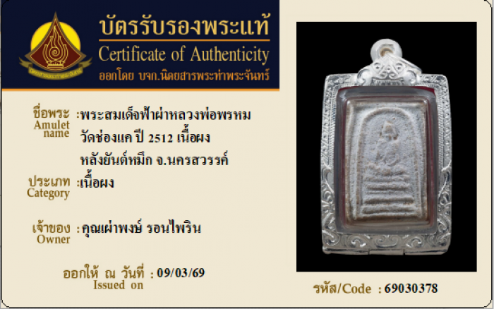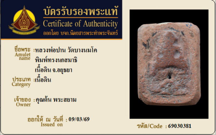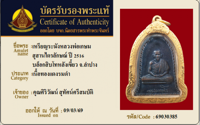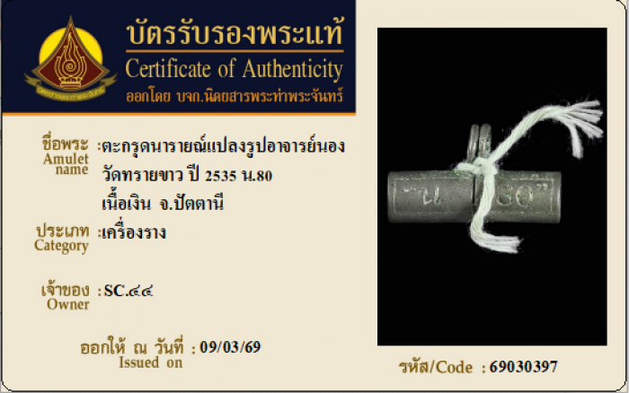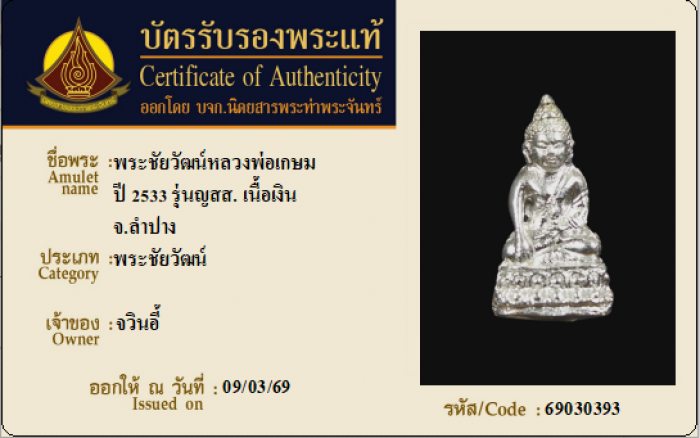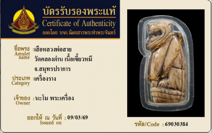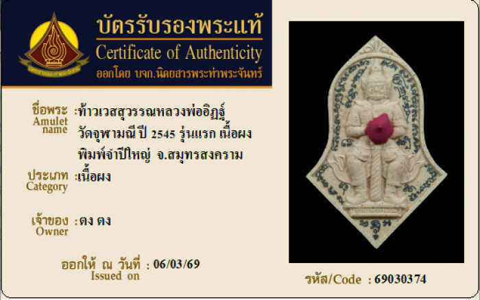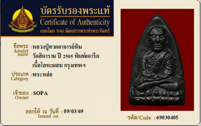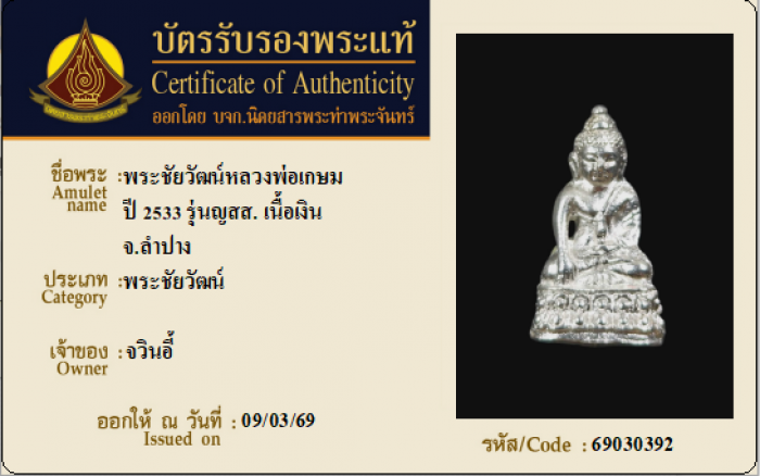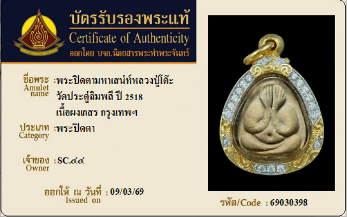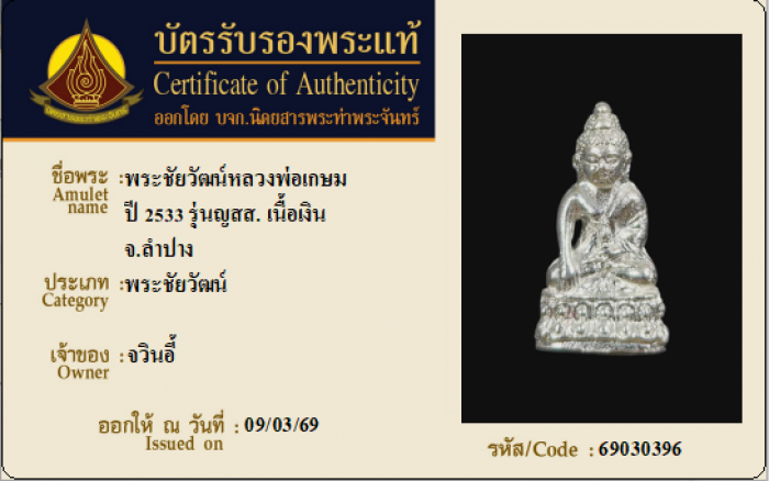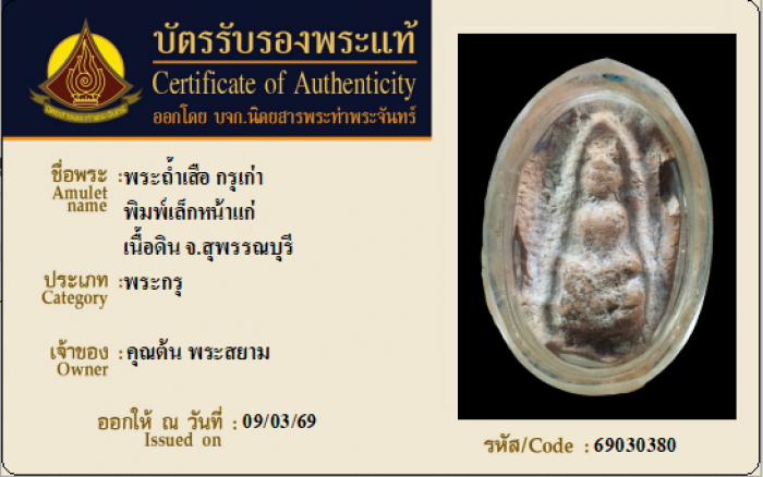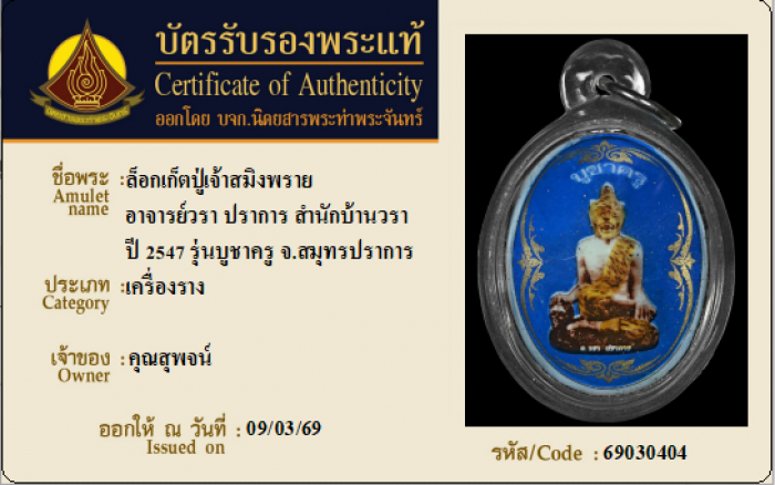 ค้นหาใบการันตีพระแท้