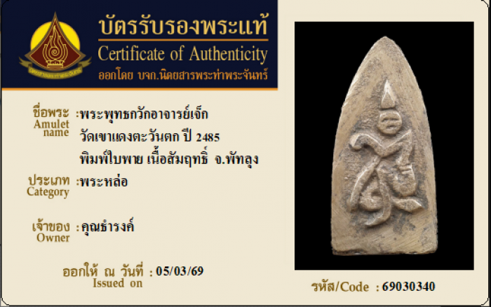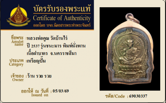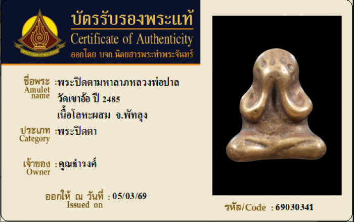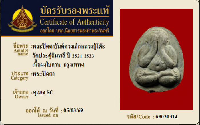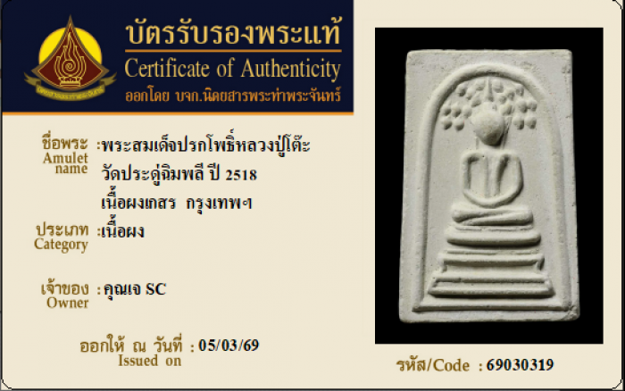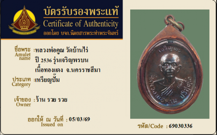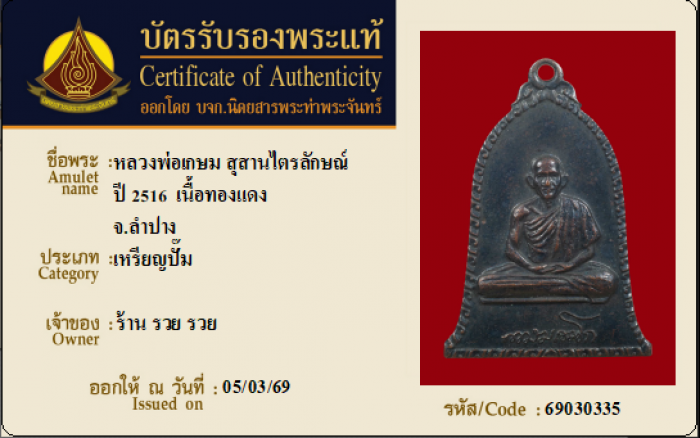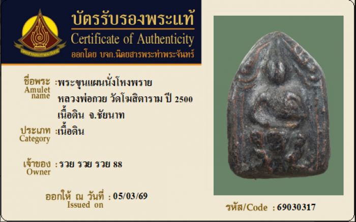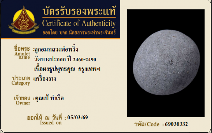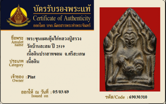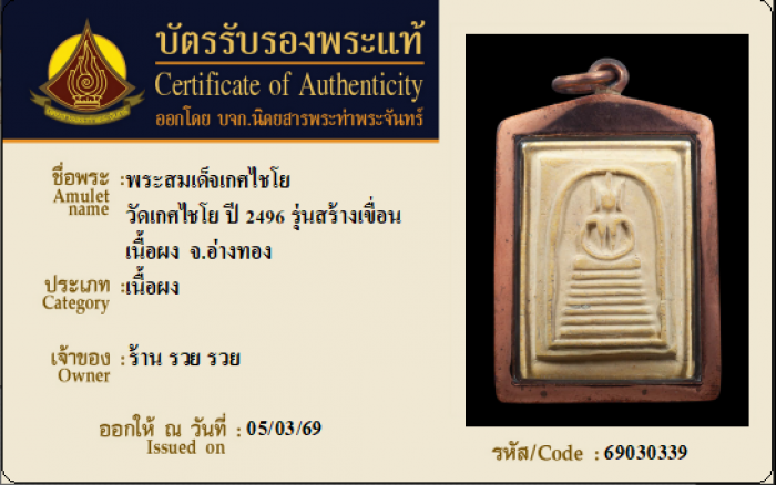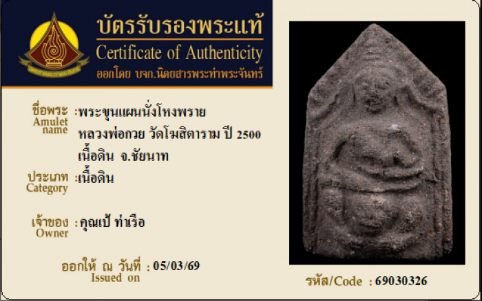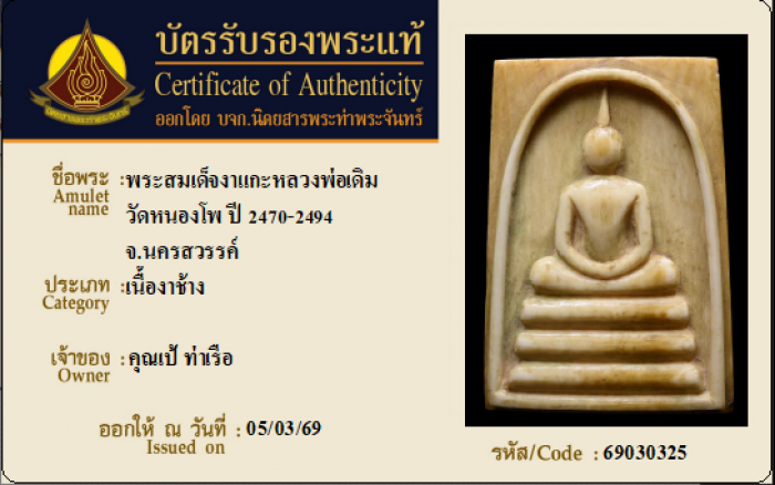 ค้นหาใบการันตีพระแท้