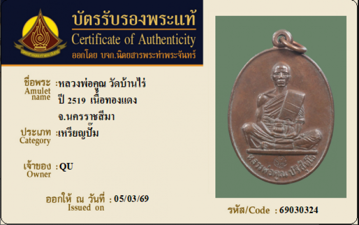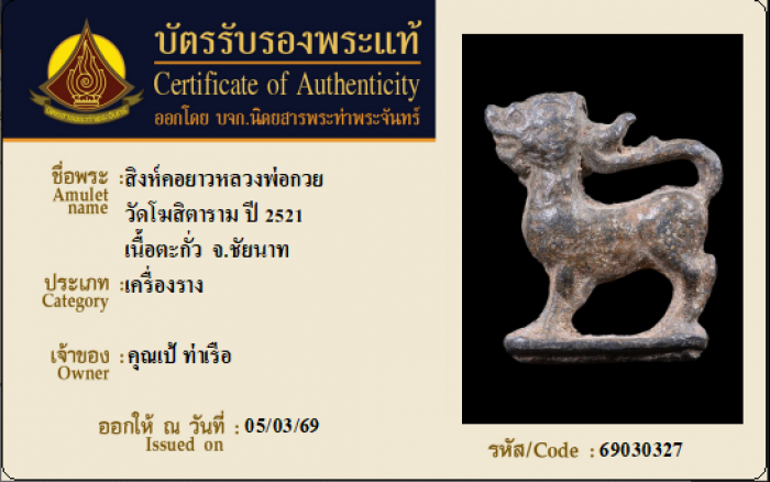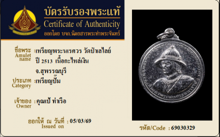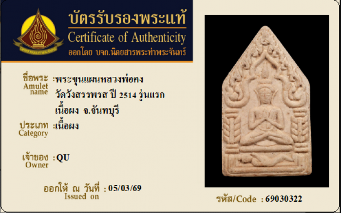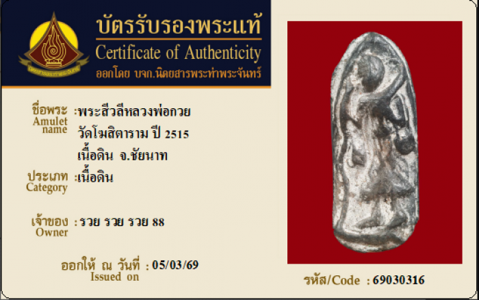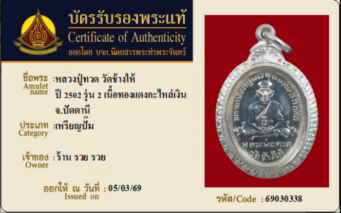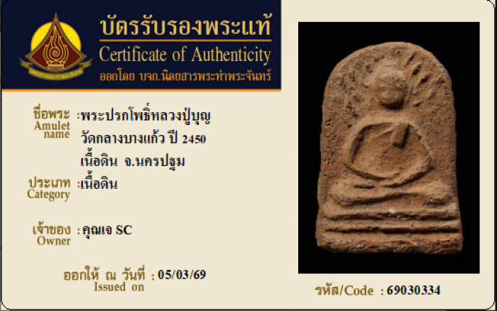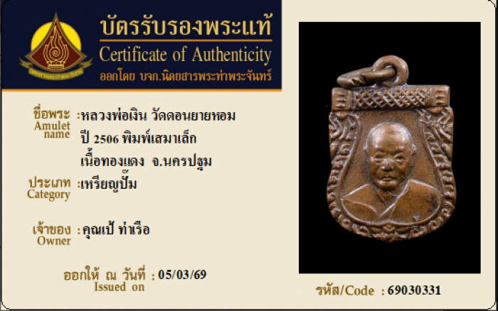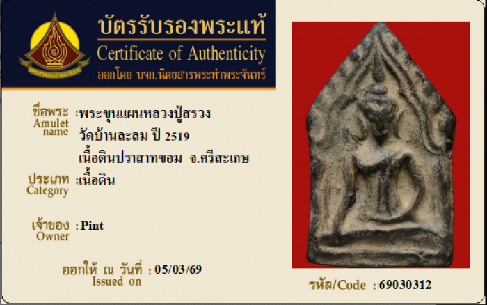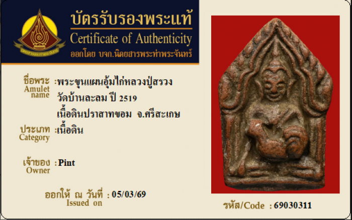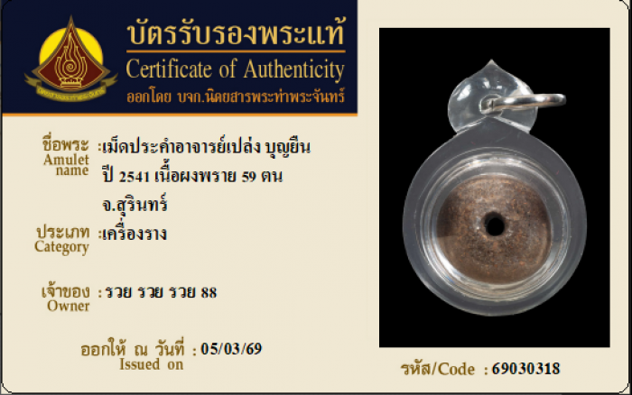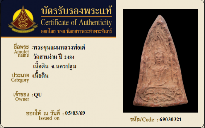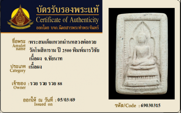 ค้นหาใบการันตีพระแท้