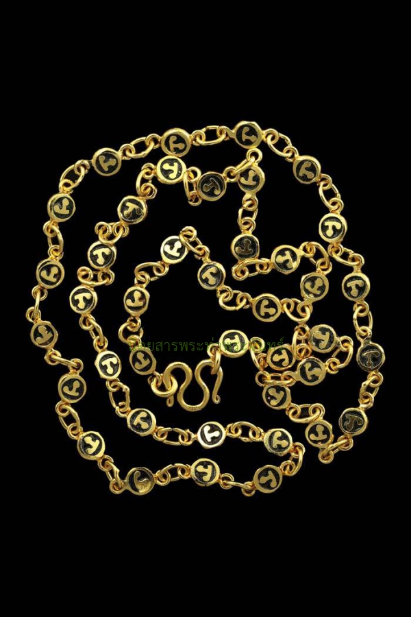 หมายเลขใบการันตี 66033221 ชื่อพระ สร้อยหัวนะโมหลวงพ่อคล้าย วัดสวนขัน ปี 2510 เนื้อกะไหล่ทองลงถม จ.นครศรีธรรมราช เจ้าของ จูล่ง หมวดหมู่ เครื่องราง