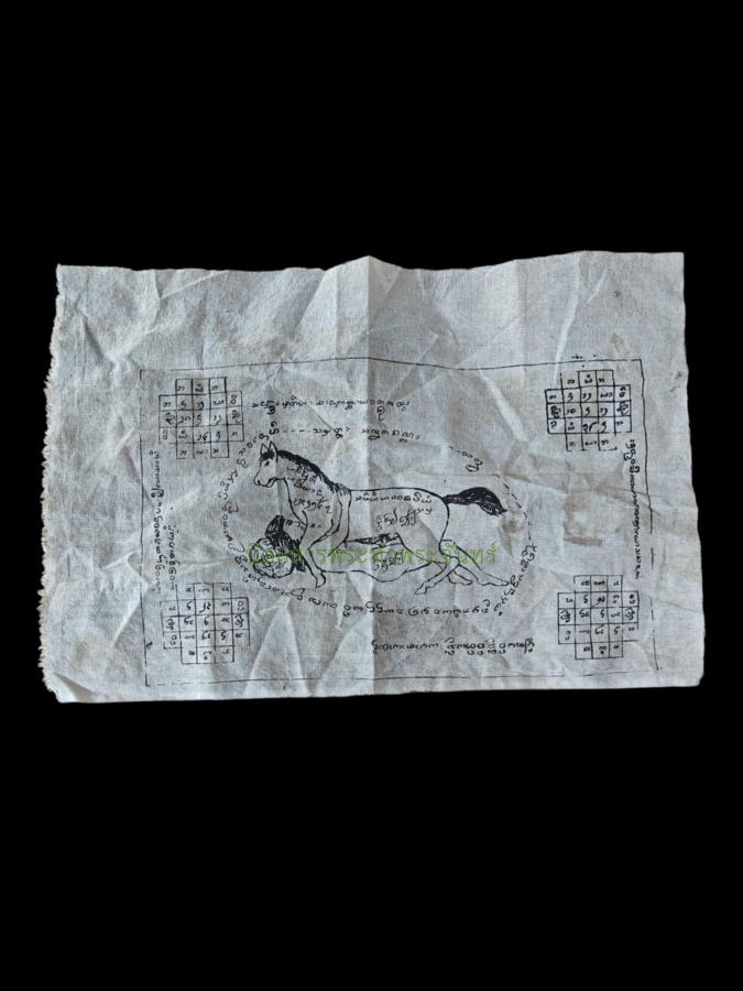 หมายเลขใบการันตี 68101494 ชื่อพระ ผ้ายันต์ม้าเสพนางครูบาต๋า วัดบ้านเหล่า ปี 2518 เนื้อผ้าห่อศพ จ.เชียงใหม่ เจ้าของ จูกัดเหลียง หมวดหมู่ เครื่องราง