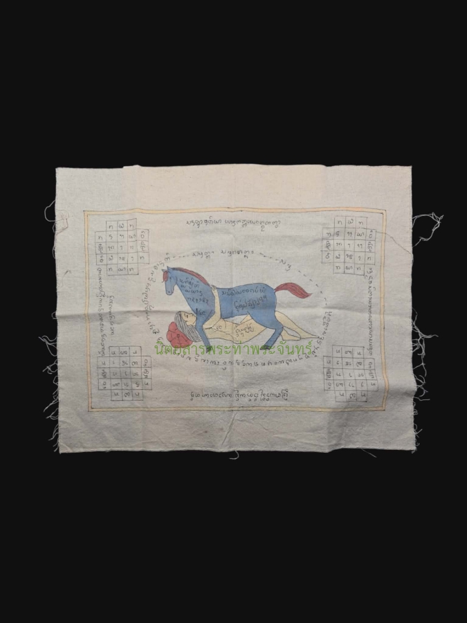 หมายเลขใบการันตี 69020350 ชื่อพระ ผ้ายันต์ม้าเสพนางครูบาต๋า วัดบ้านเหล่า ปี 2518 เนื้อผ้าห่อศพ จ.เชียงใหม่ เจ้าของ เบนจามิน เชสโก้ หมวดหมู่ เครื่องราง