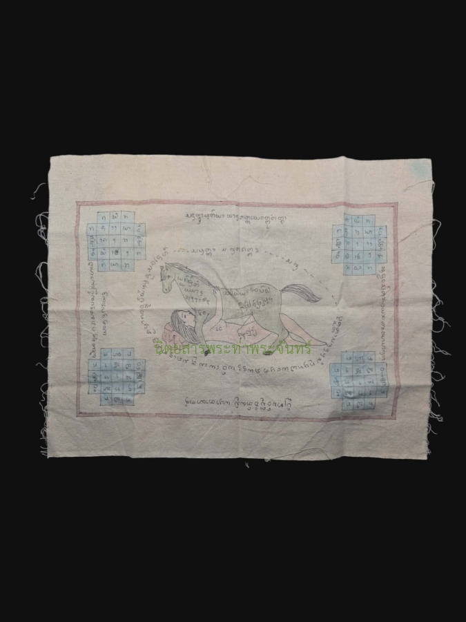 หมายเลขใบการันตี 69020351 ชื่อพระ ผ้ายันต์ม้าเสพนางครูบาต๋า วัดบ้านเหล่า ปี 2518 เนื้อผ้าห่อศพ จ.เชียงใหม่ เจ้าของ เบนจามิน เชสโก้ หมวดหมู่ เครื่องราง