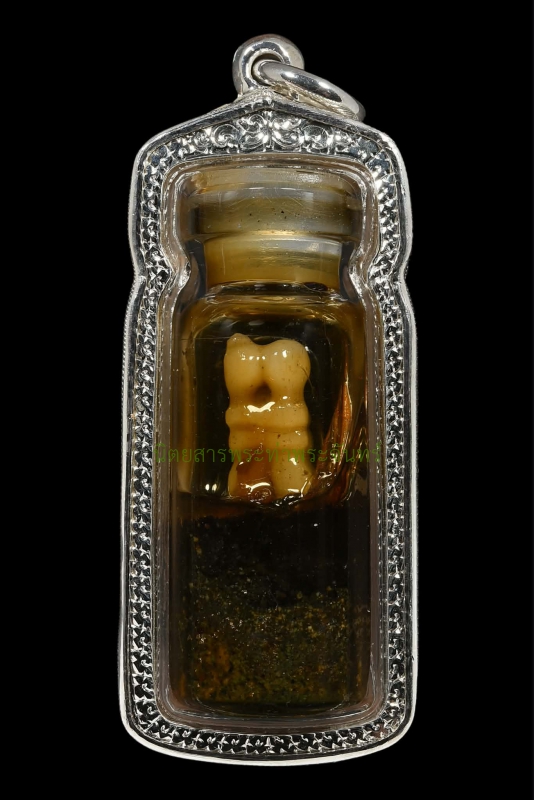หมายเลขใบการันตี 69020579 ชื่อพระ อิ้นคู่ในขวดน้ำมันเสน่ห์(นิยม)อาจารย์เปล่ง บุญยืน ปี 2539-2541 จ.สุรินทร์ เจ้าของ คุณนพอนันต์ หมวดหมู่ เครื่องราง