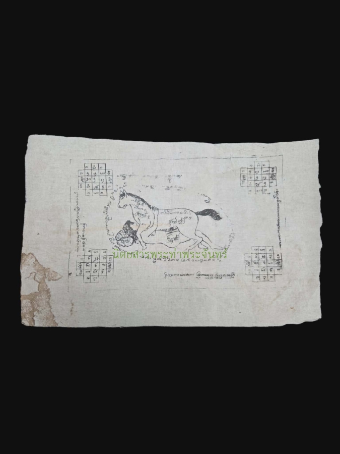 หมายเลขใบการันตี 69030135 ชื่อพระ ผ้ายันต์ม้าเสพนางครูบาต๋า วัดบ้านเหล่า ปี 2518 เนื้อผ้าห่อศพ จ.เชียงใหม่ เจ้าของ ซาโตชิ นากาโมโตะ หมวดหมู่ เครื่องราง
