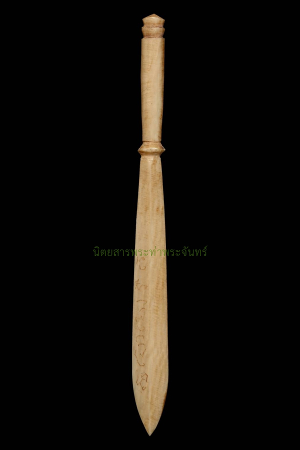 หมายเลขใบการันตี 69030273 ชื่อพระ พระขรรค์หลวงพ่อโศก วัดปากคลองบางครก ปี 2470-2482 เนื้องาช้าง จ.เพชรบุรี เจ้าของ มดแดง หมวดหมู่ เครื่องราง
