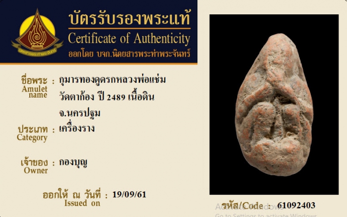 ค้นหาใบการันตีพระแท้