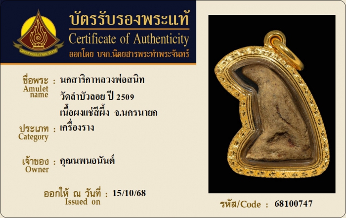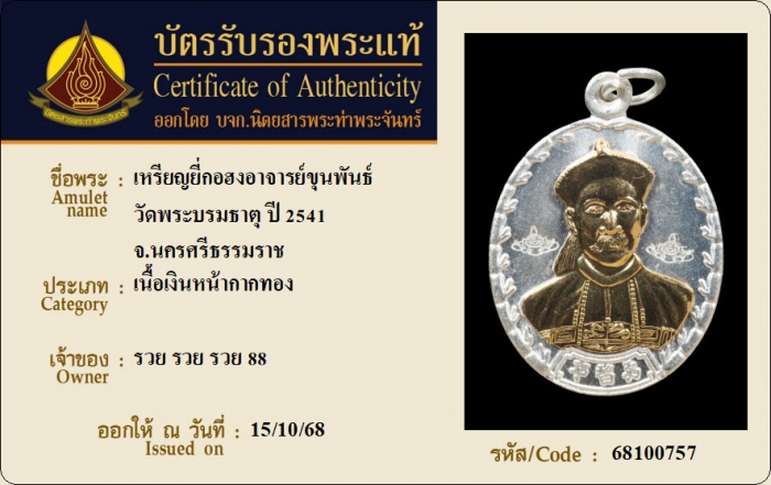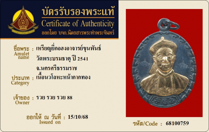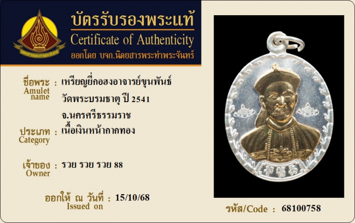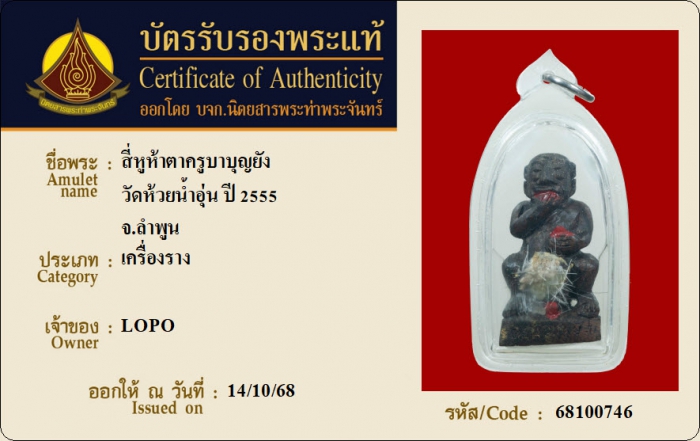 ค้นหาใบการันตีพระแท้