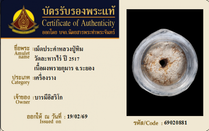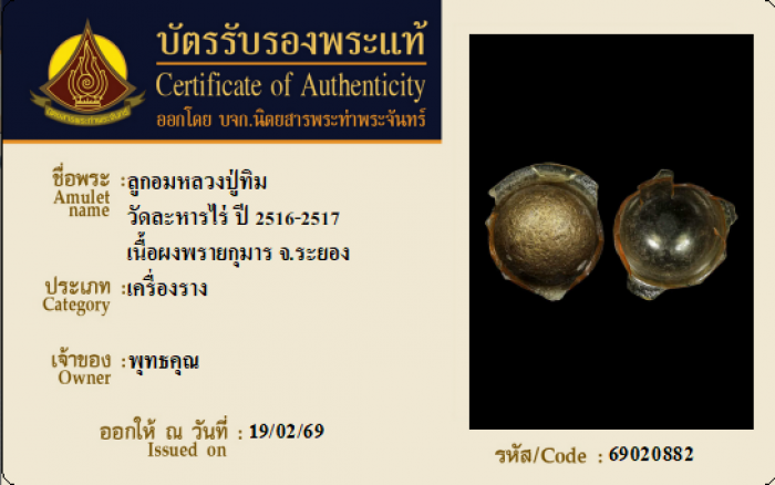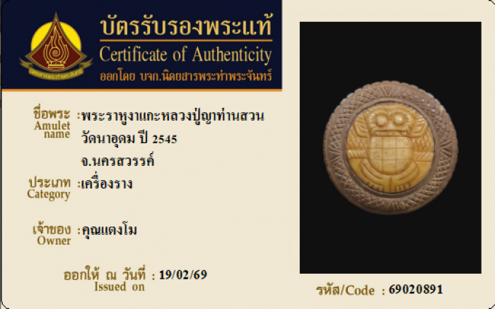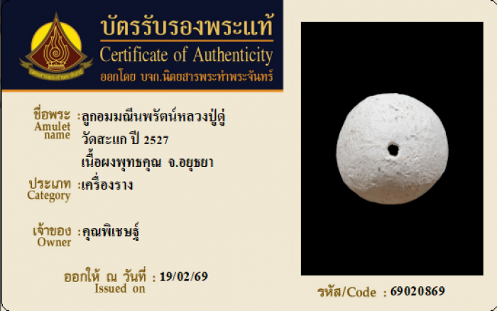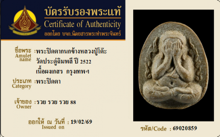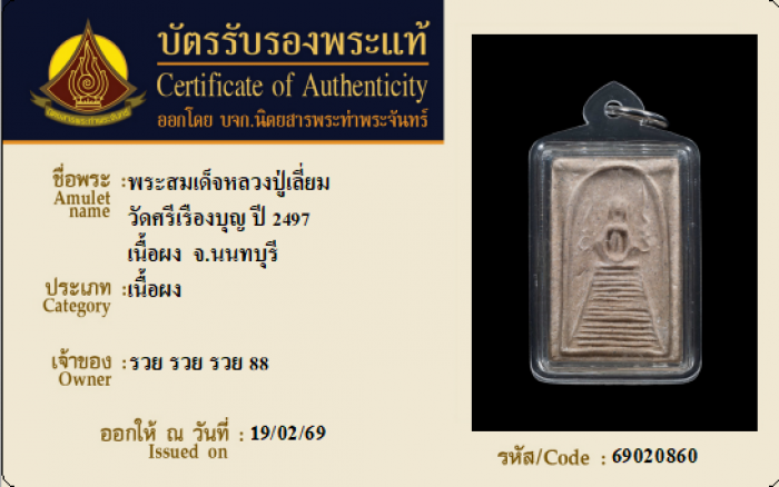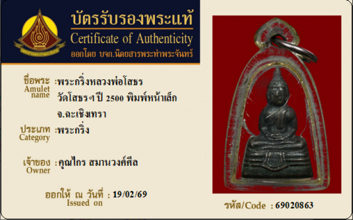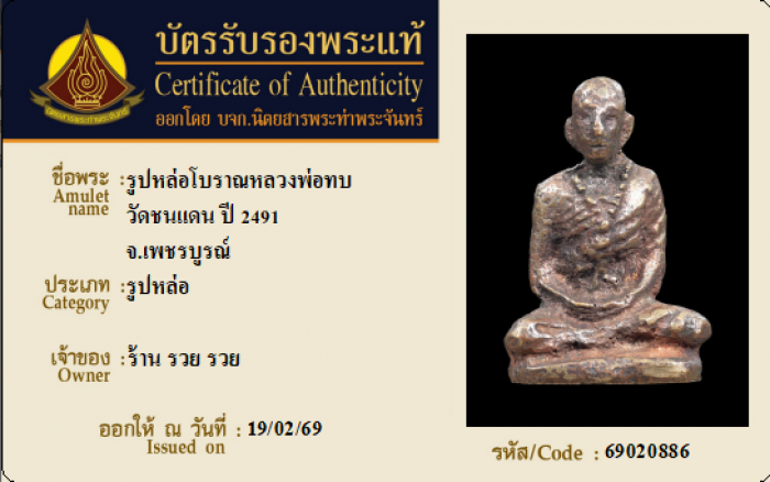 ค้นหาใบการันตีพระแท้