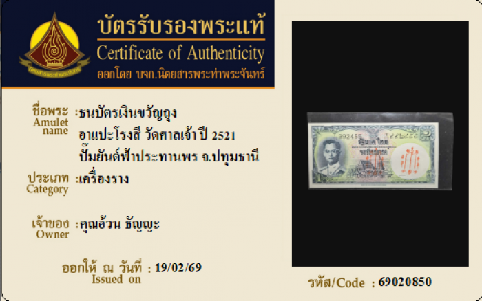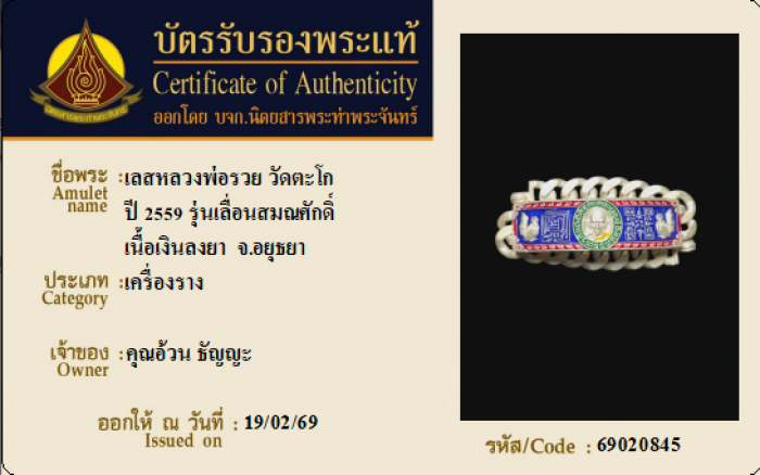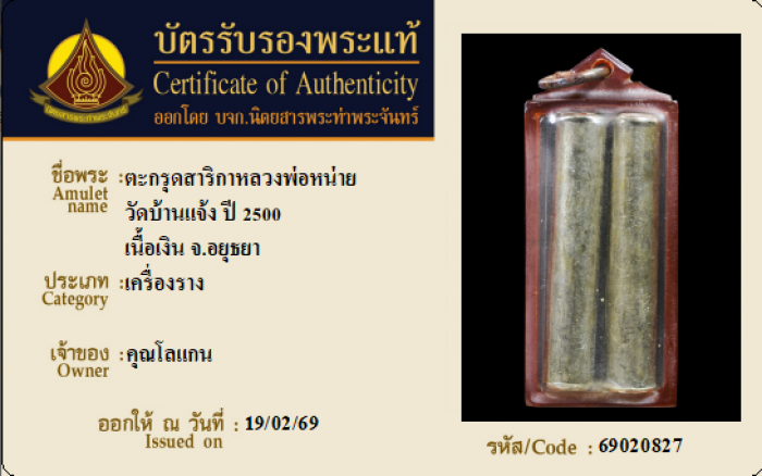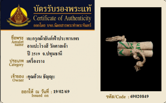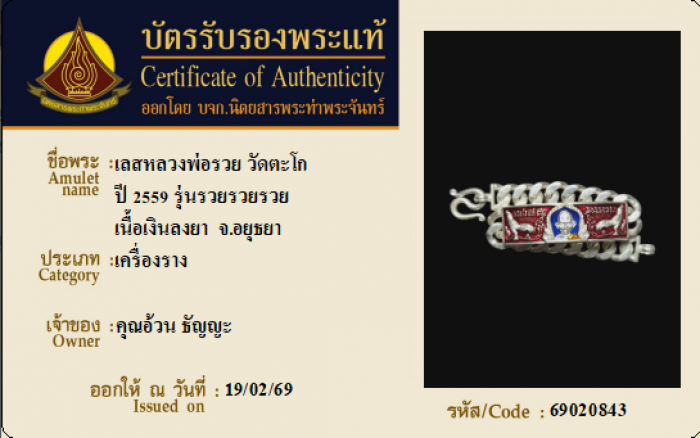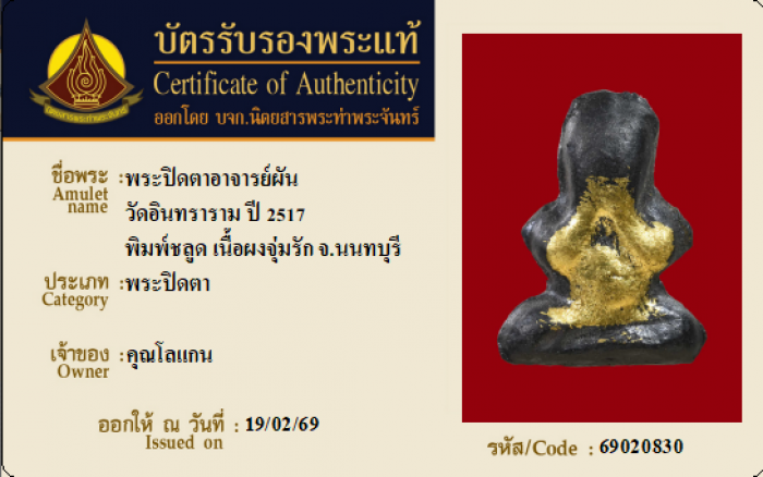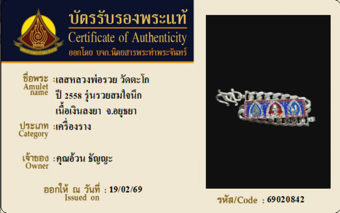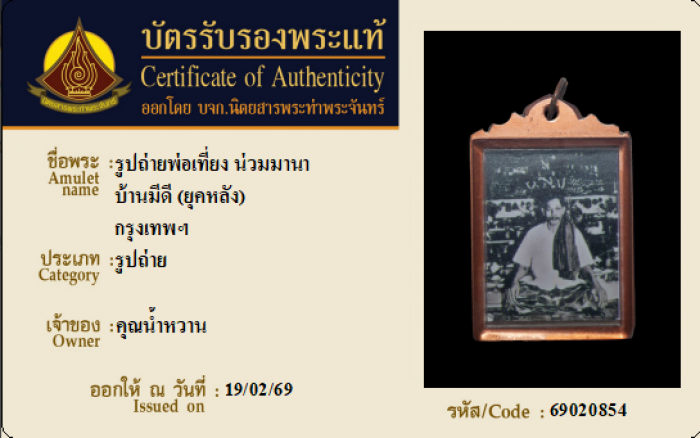 ค้นหาใบการันตีพระแท้