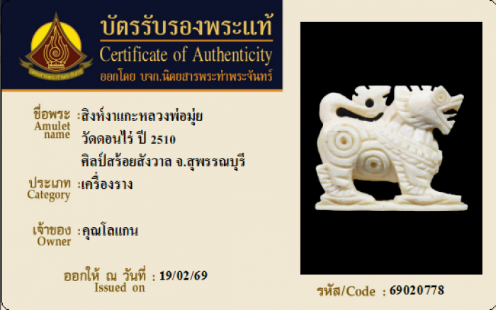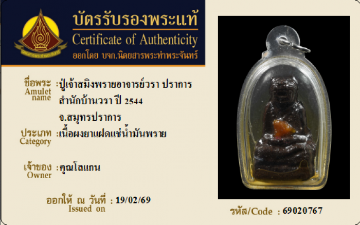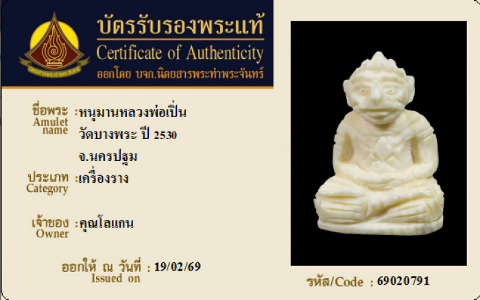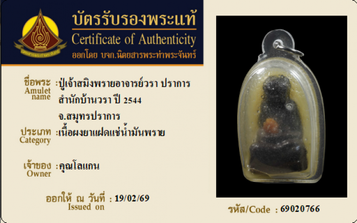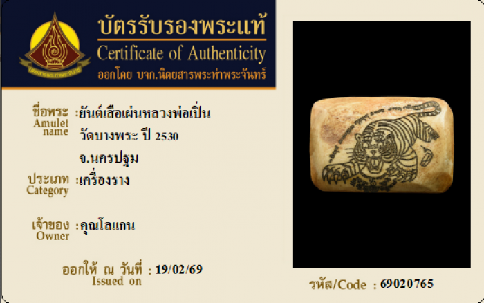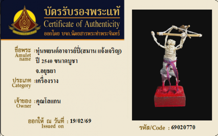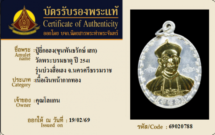 ค้นหาใบการันตีพระแท้