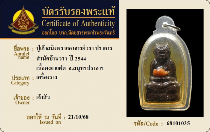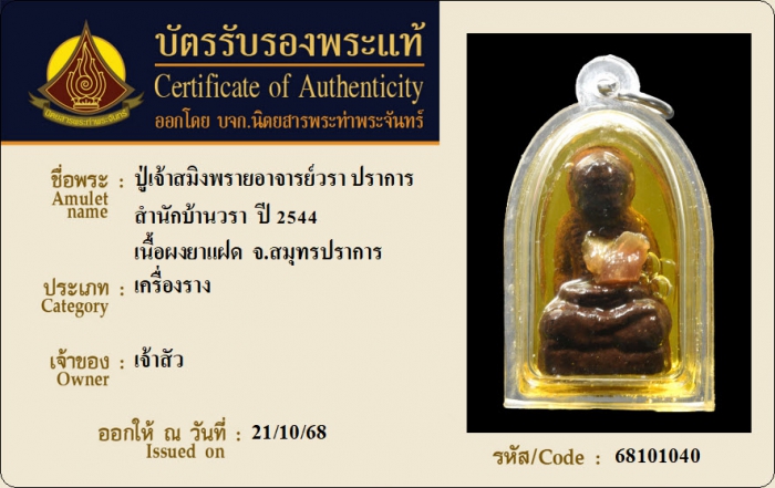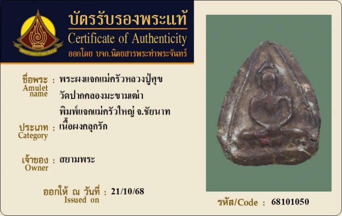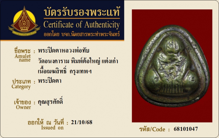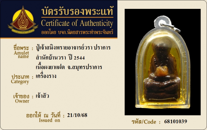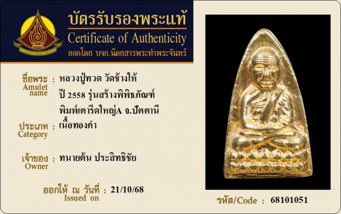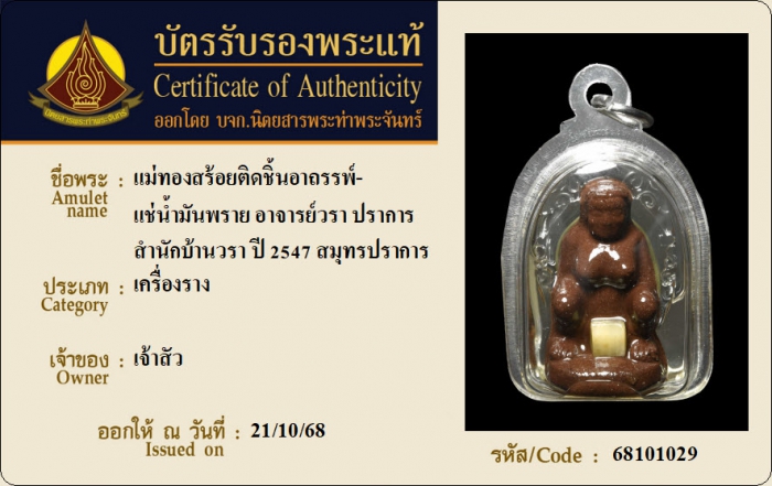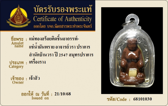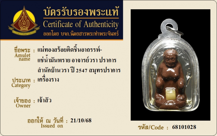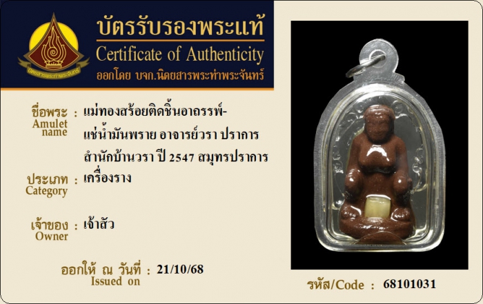 ค้นหาใบการันตีพระแท้
