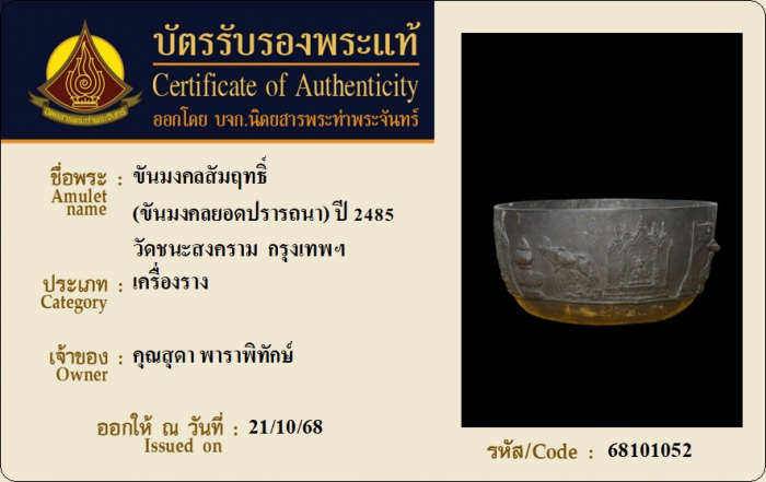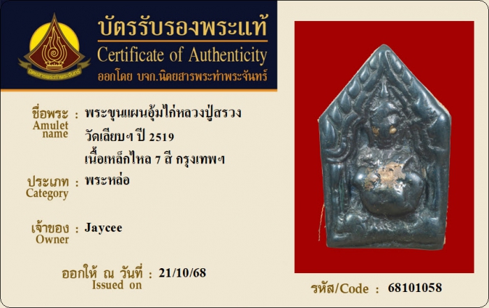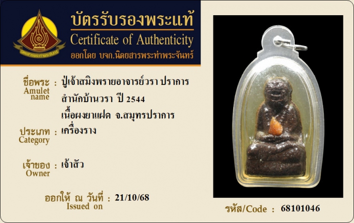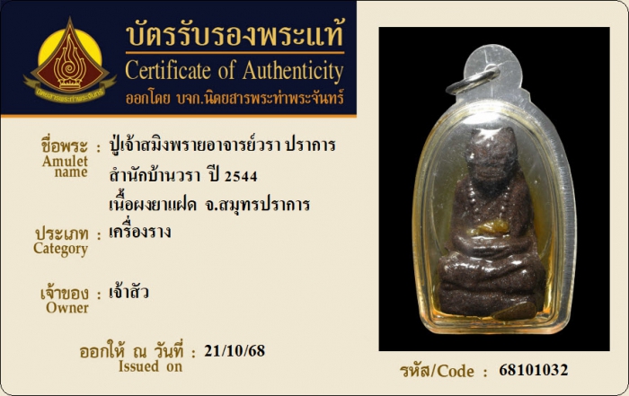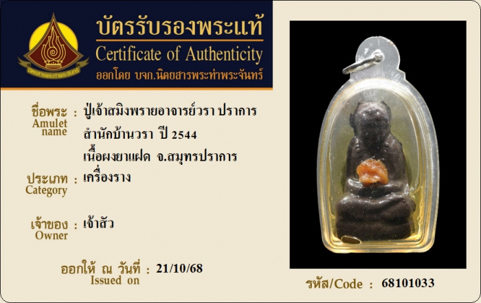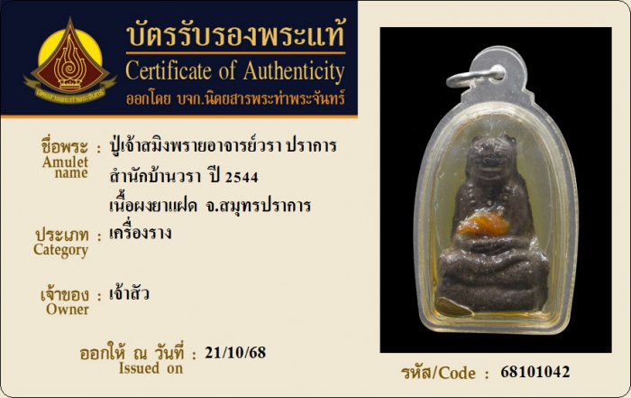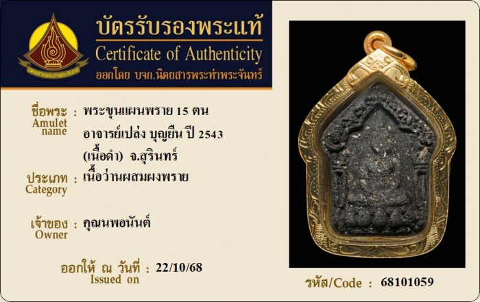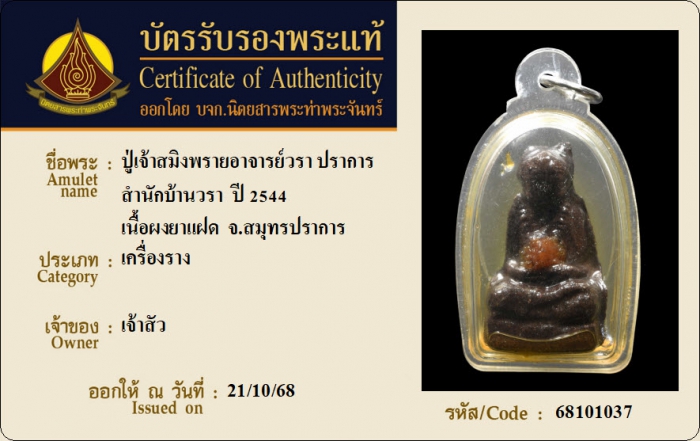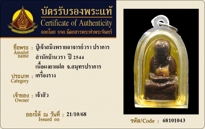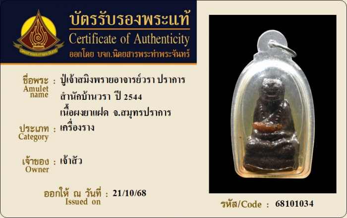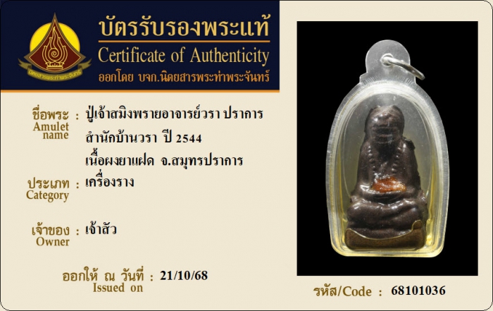ค้นหาใบการันตีพระแท้