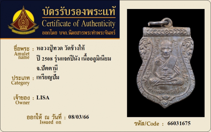 ค้นหาใบการันตีพระแท้