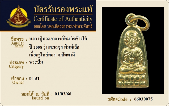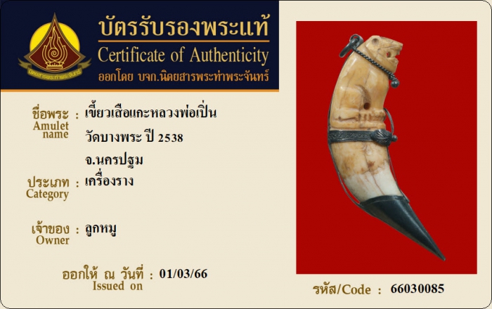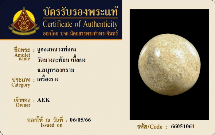 ค้นหาใบการันตีพระแท้