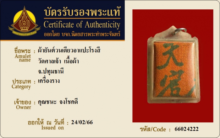 ค้นหาใบการันตีพระแท้