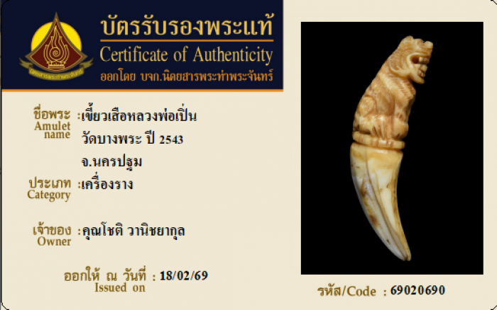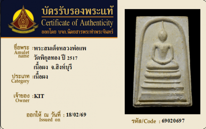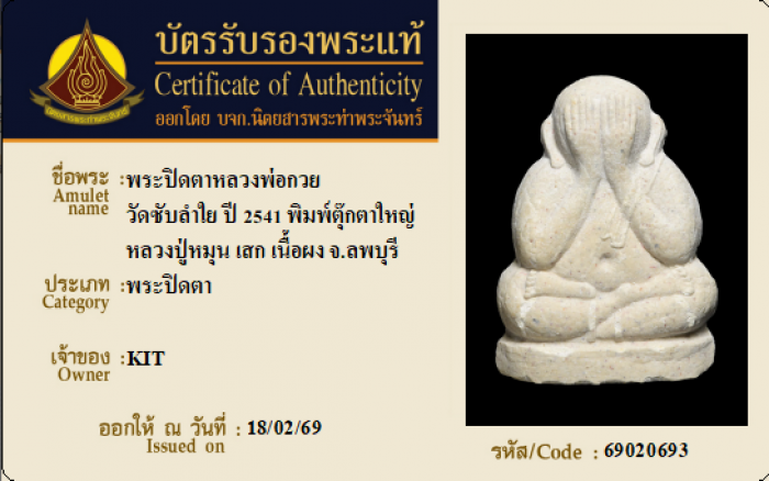 ค้นหาใบการันตีพระแท้
