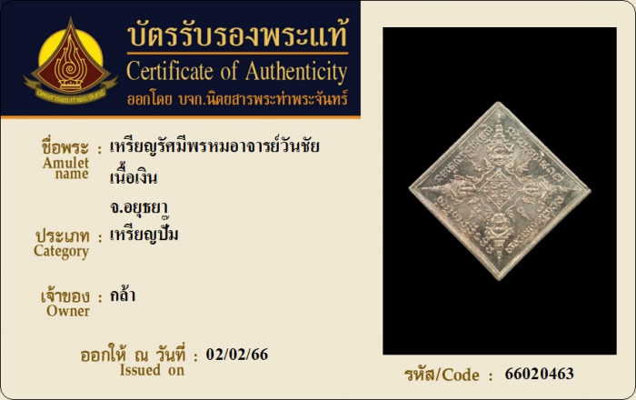 ค้นหาใบการันตีพระแท้