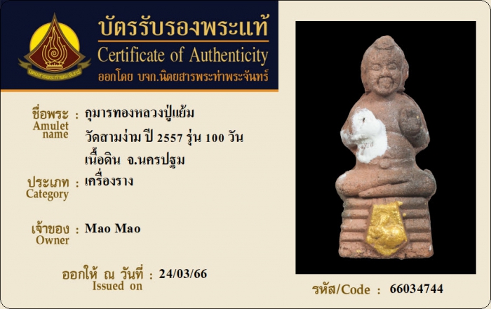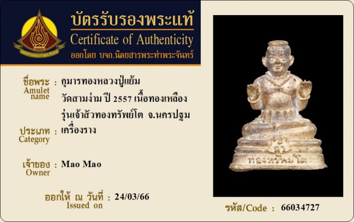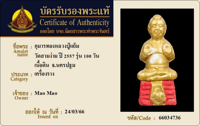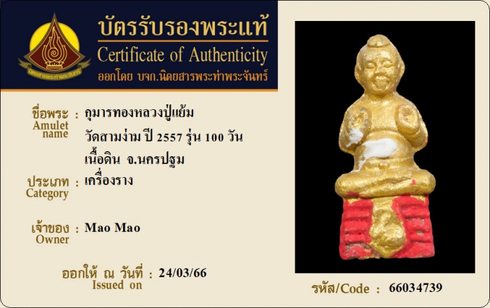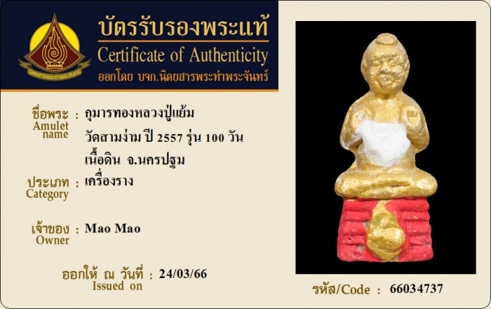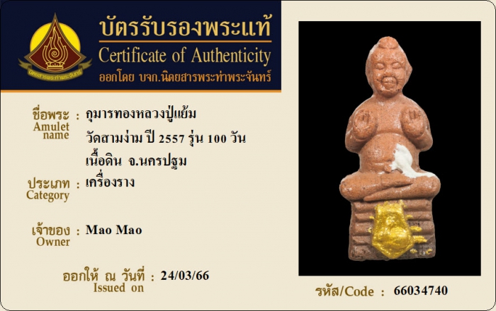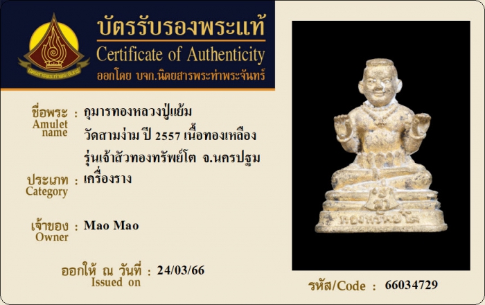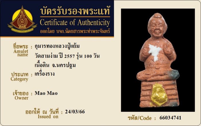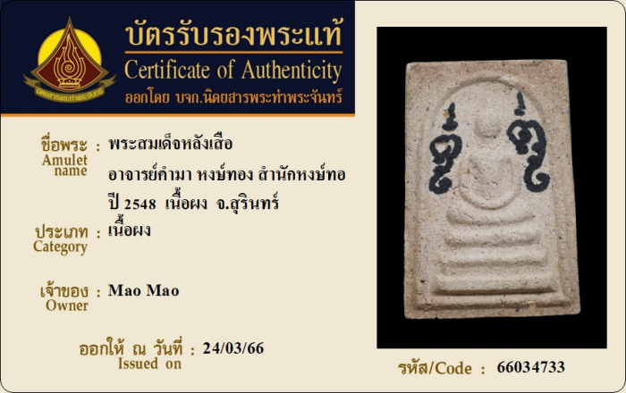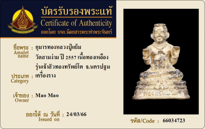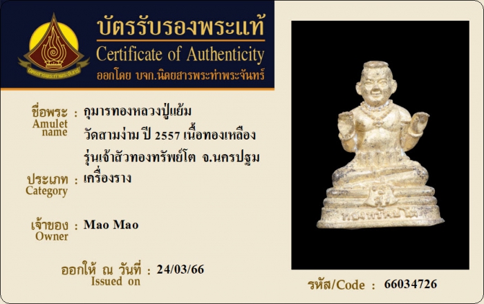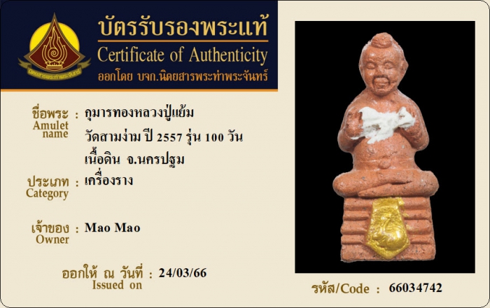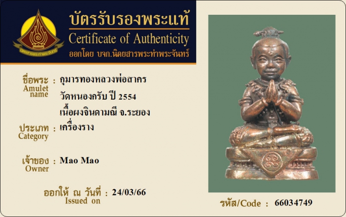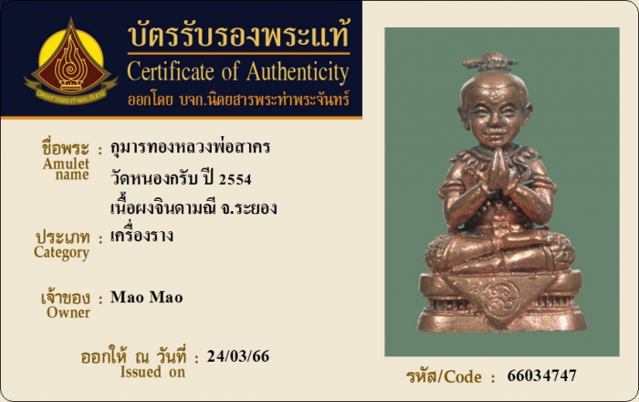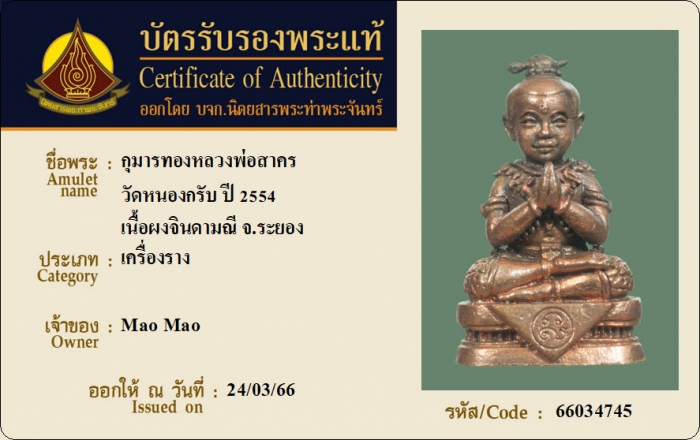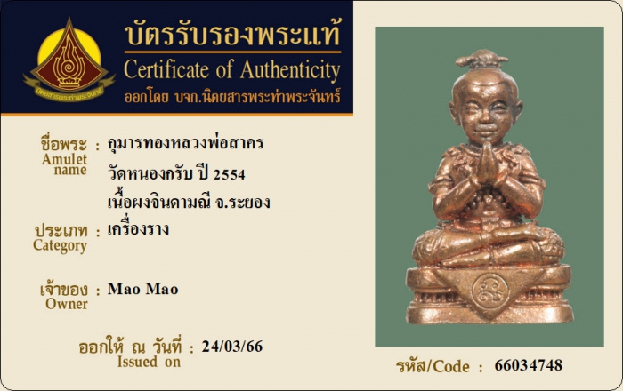 ค้นหาใบการันตีพระแท้