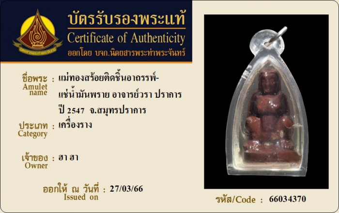 ค้นหาใบการันตีพระแท้