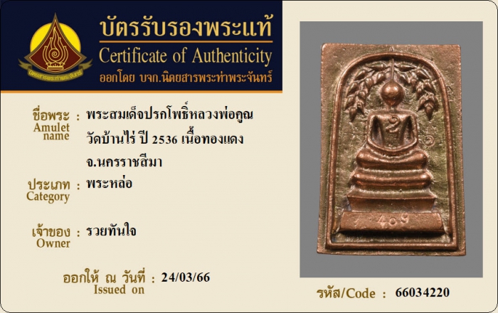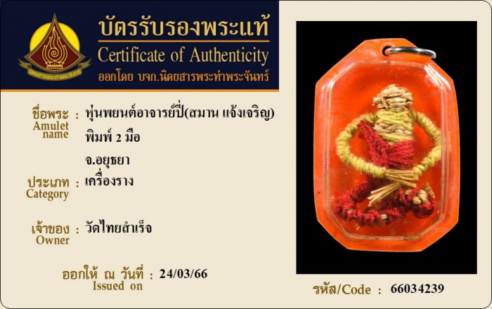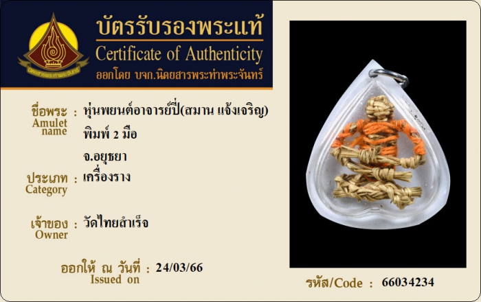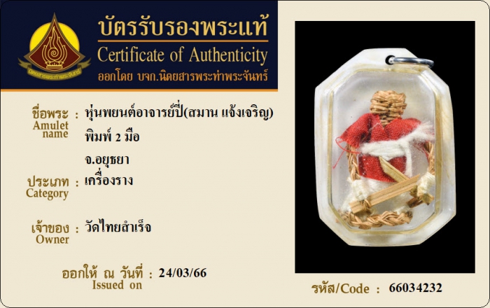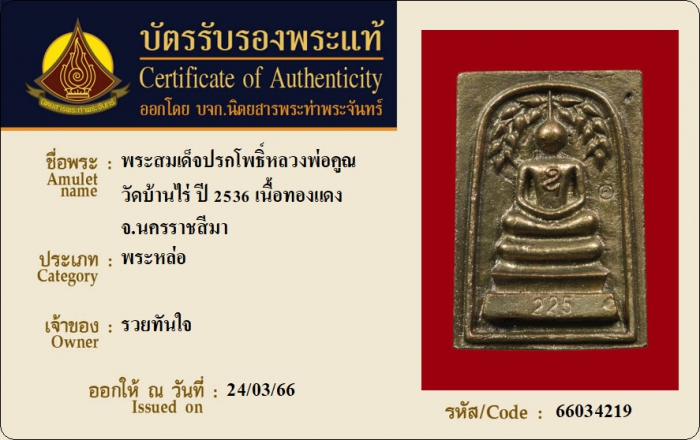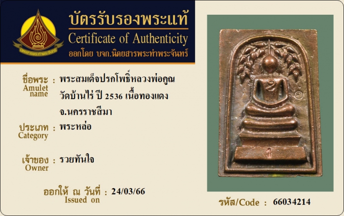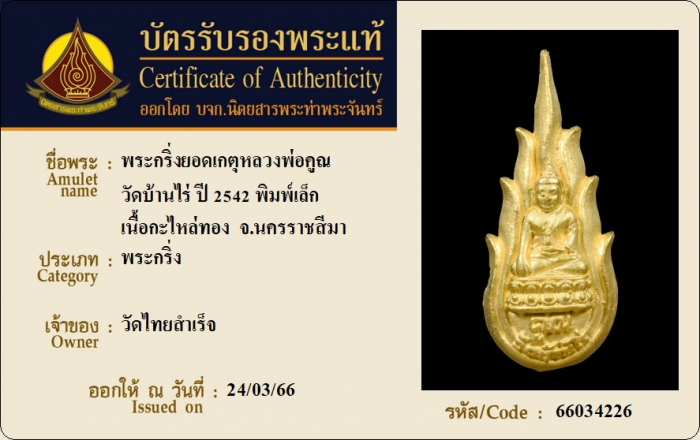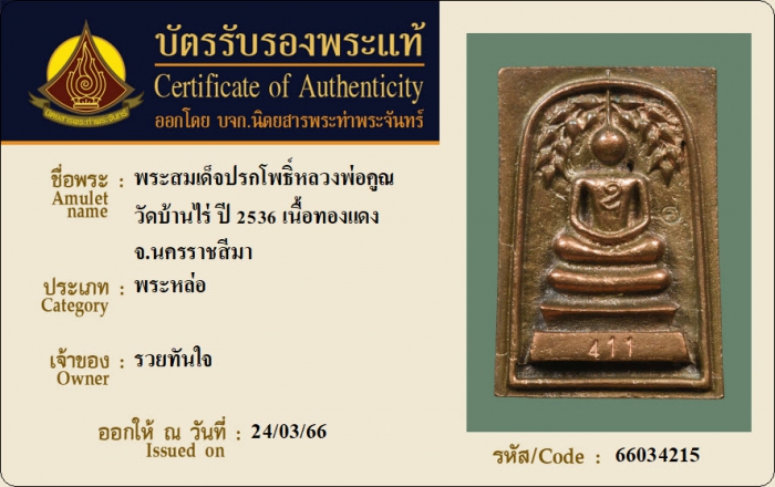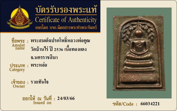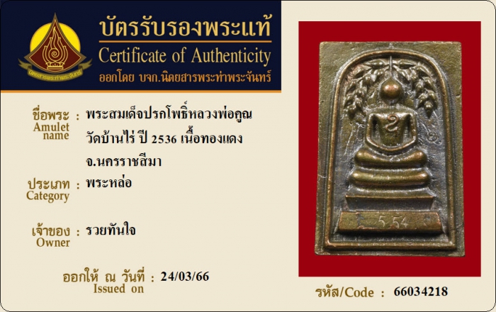 ค้นหาใบการันตีพระแท้