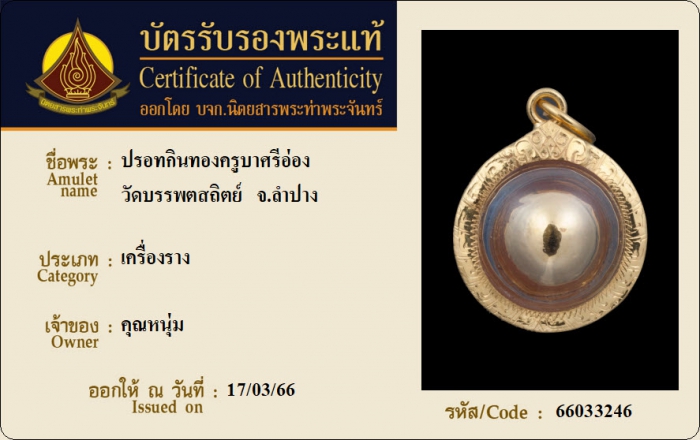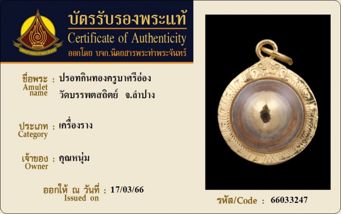 ค้นหาใบการันตีพระแท้