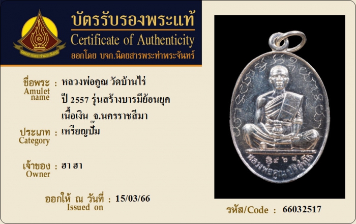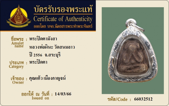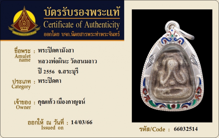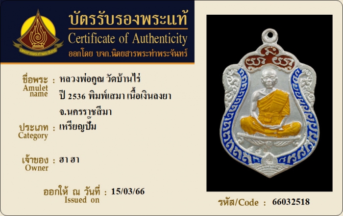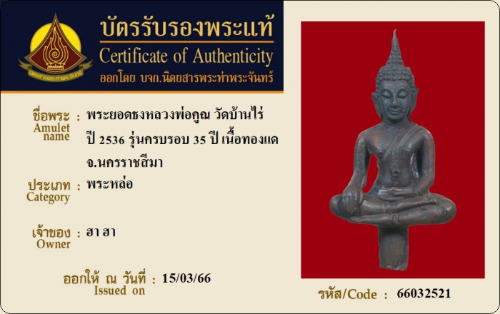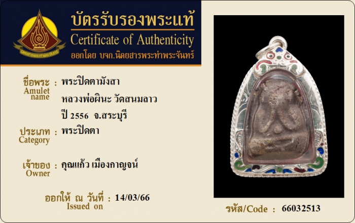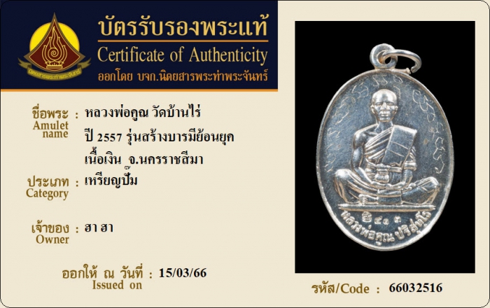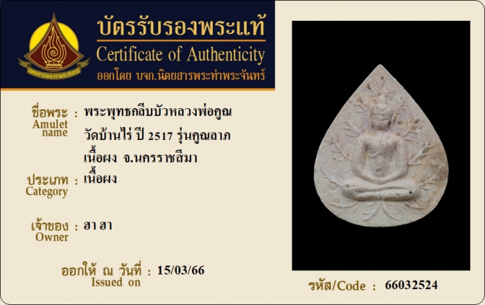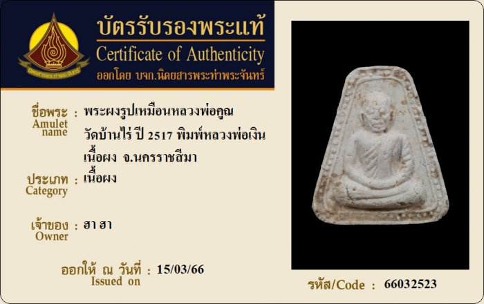 ค้นหาใบการันตีพระแท้