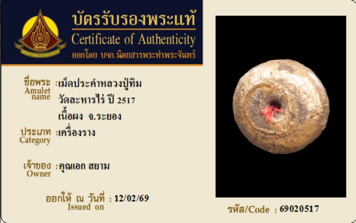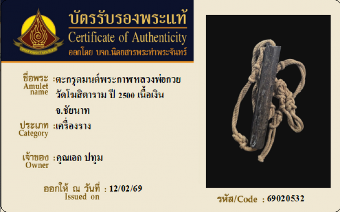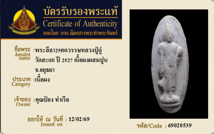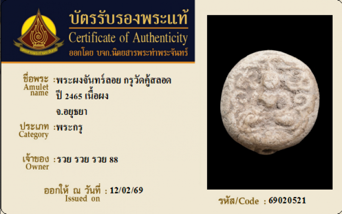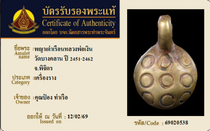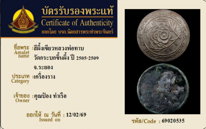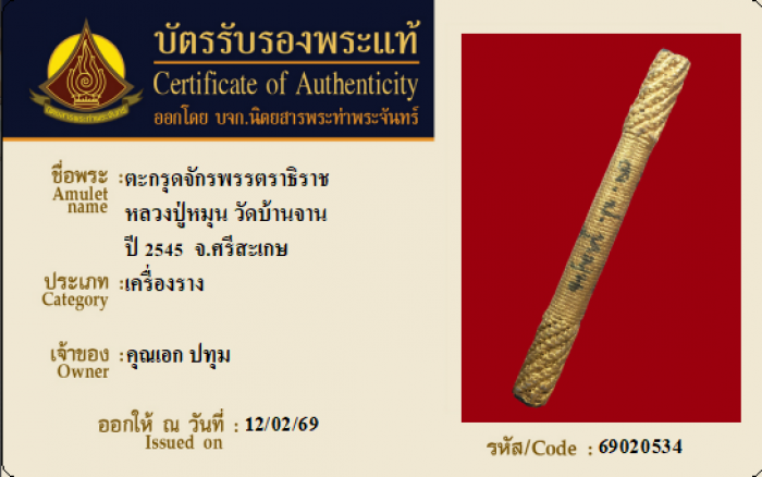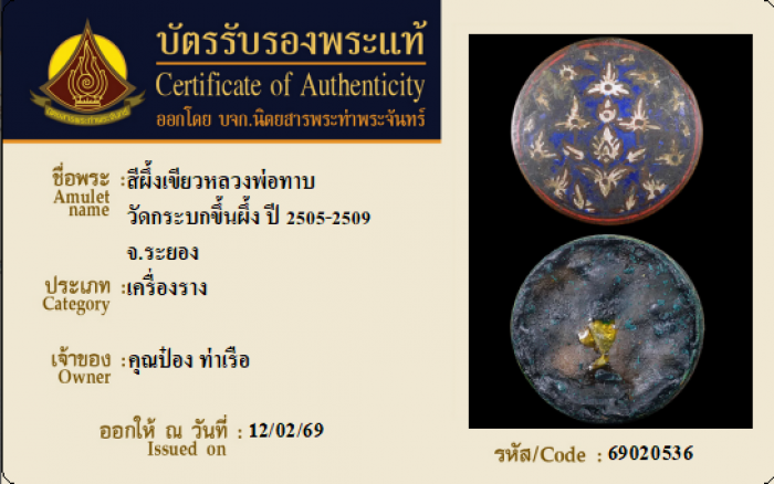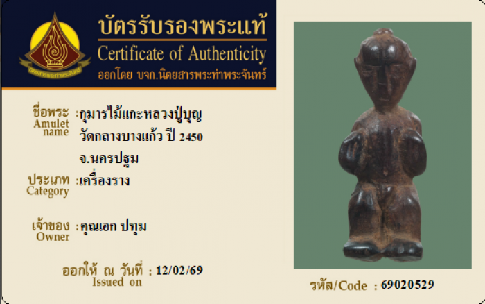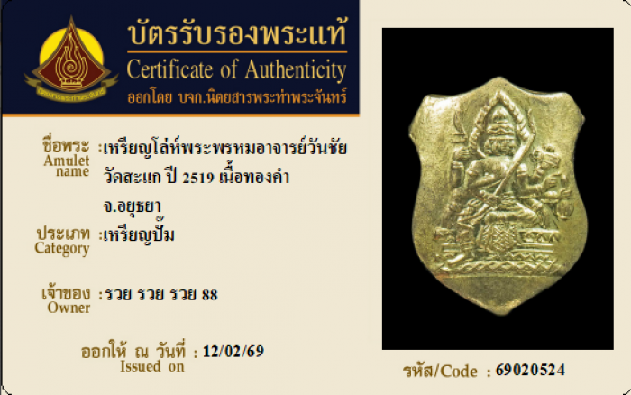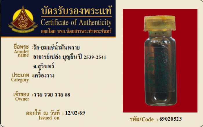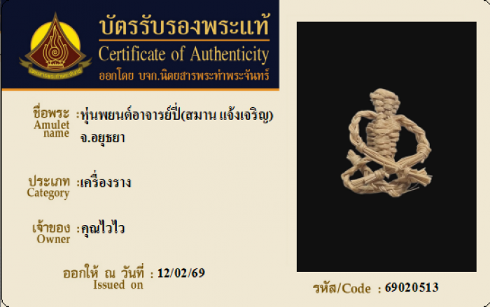 ค้นหาใบการันตีพระแท้