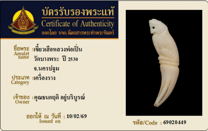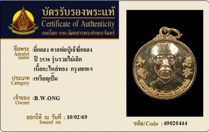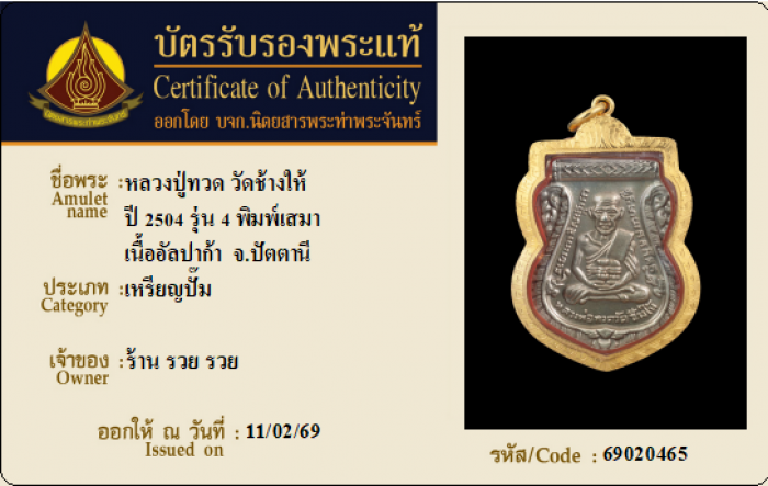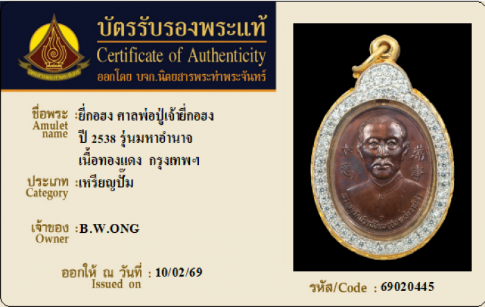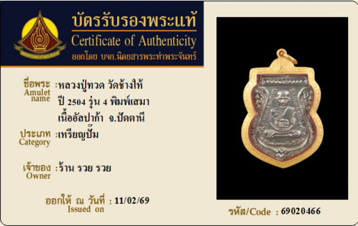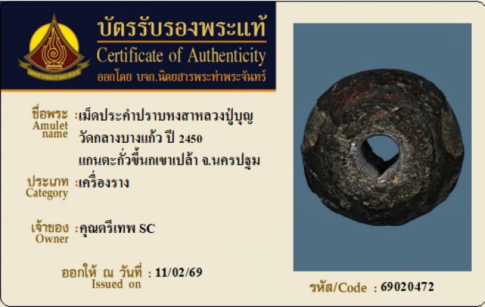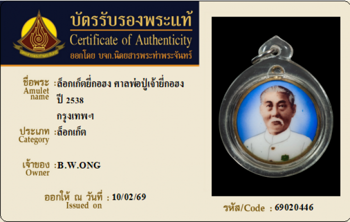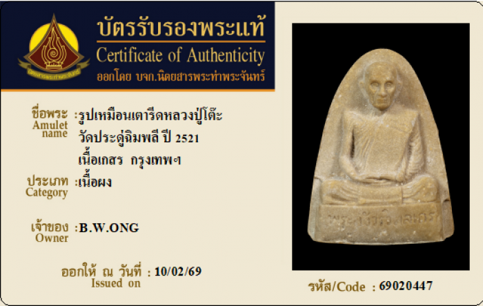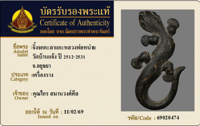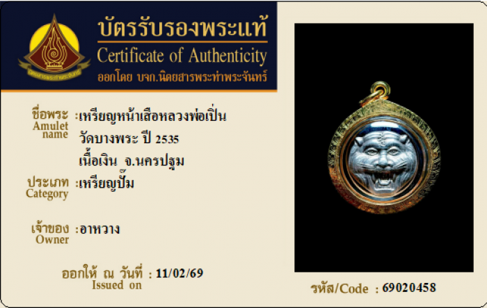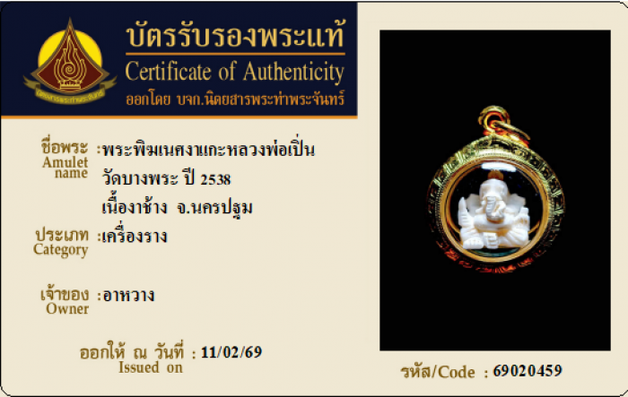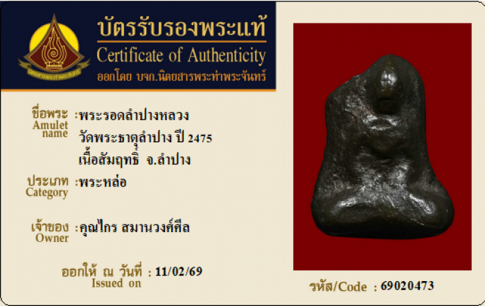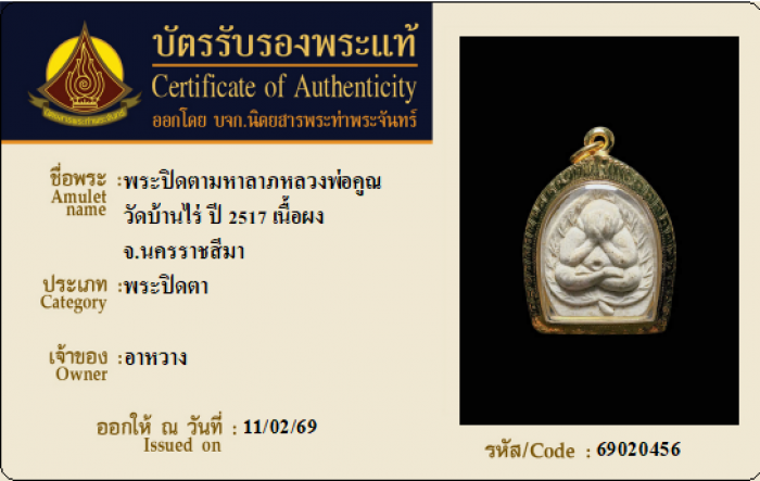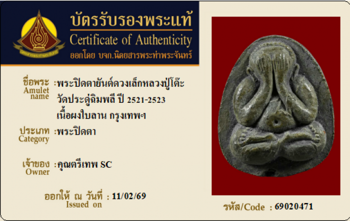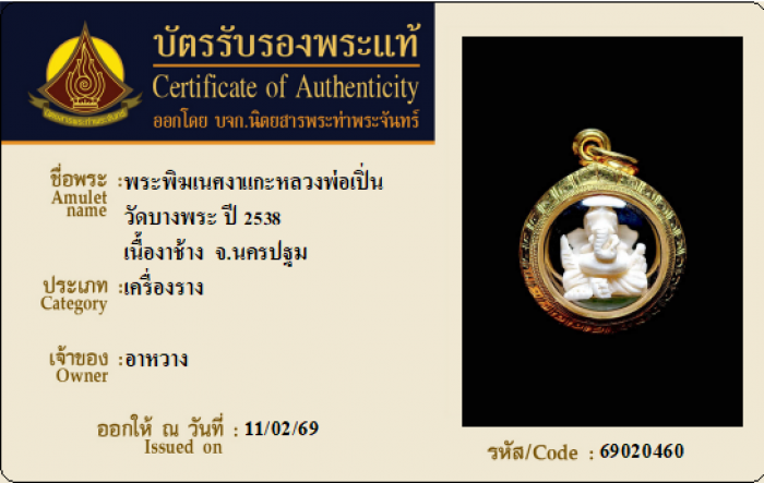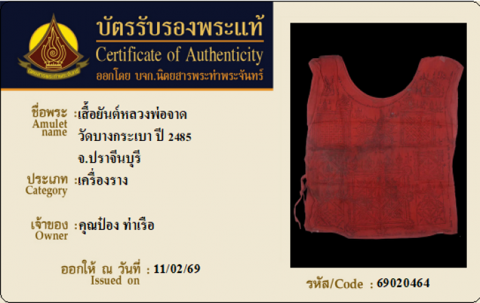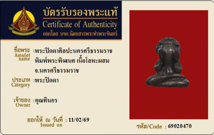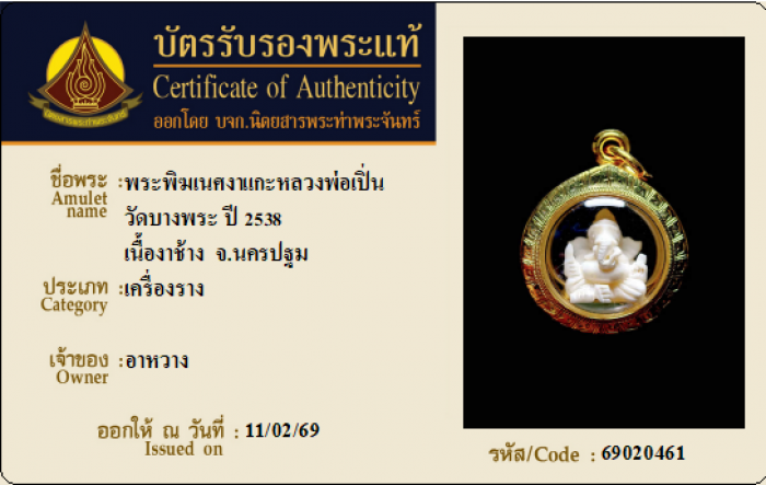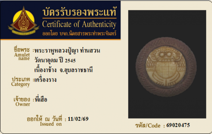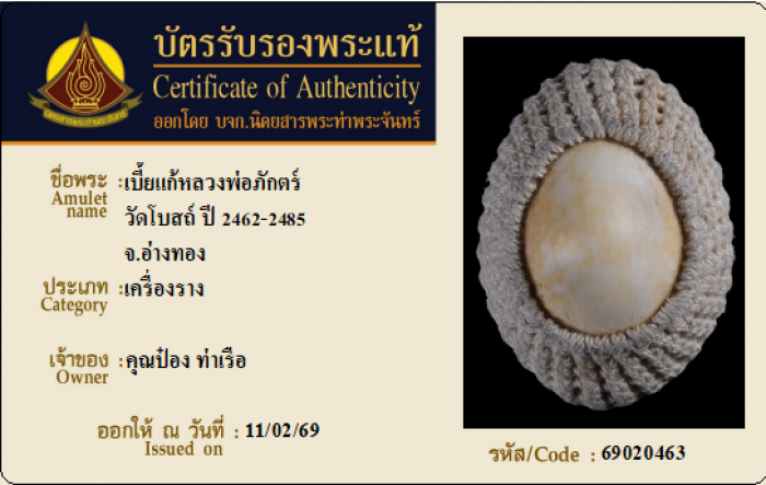 ค้นหาใบการันตีพระแท้