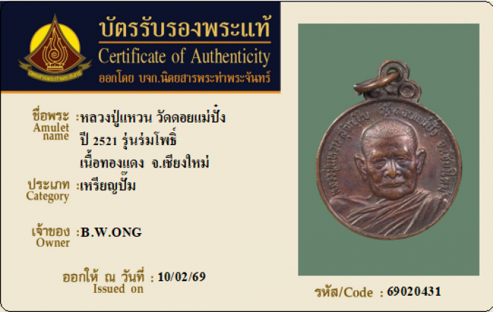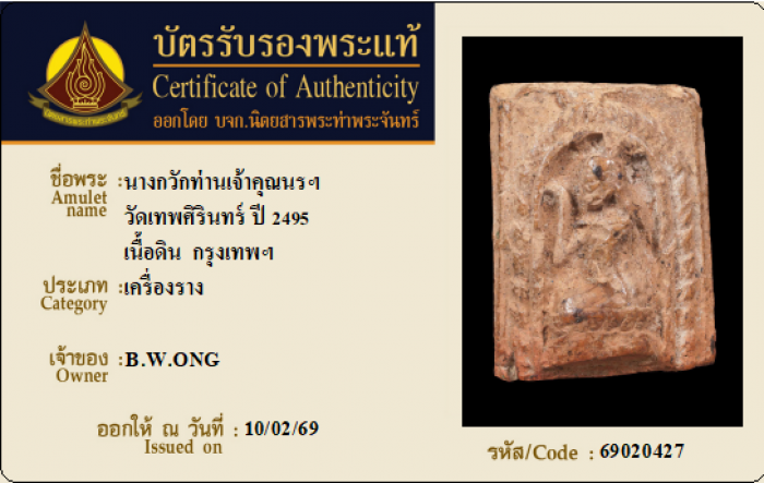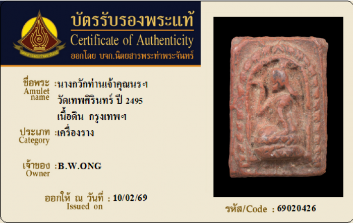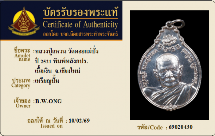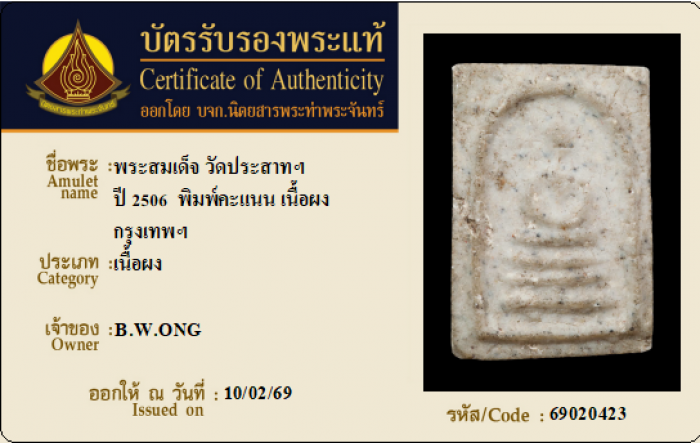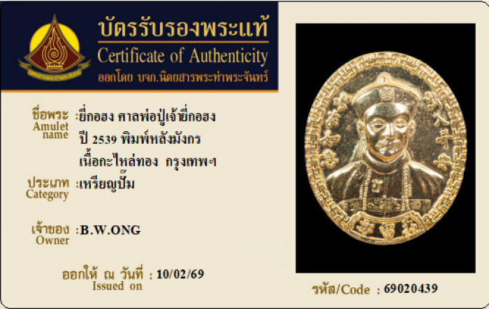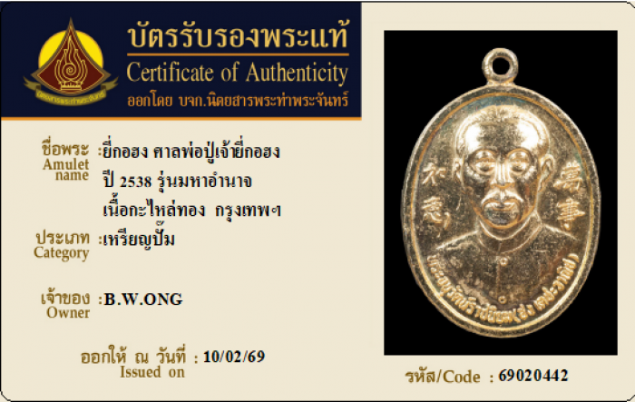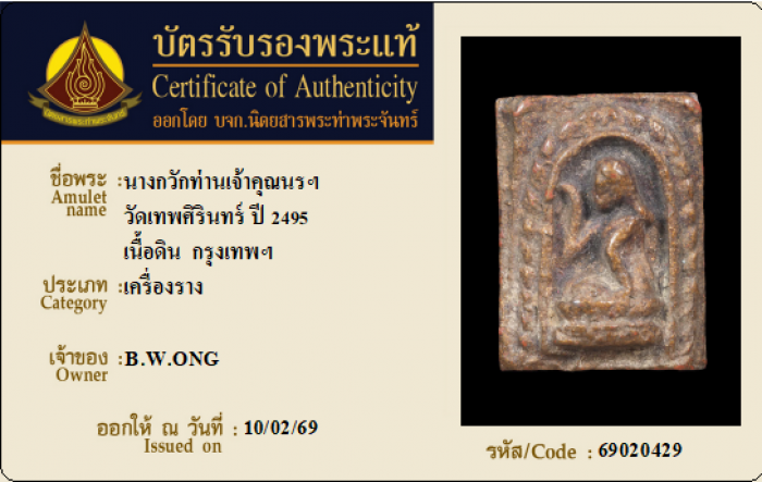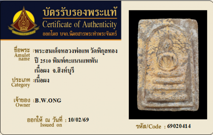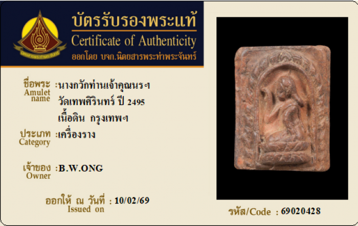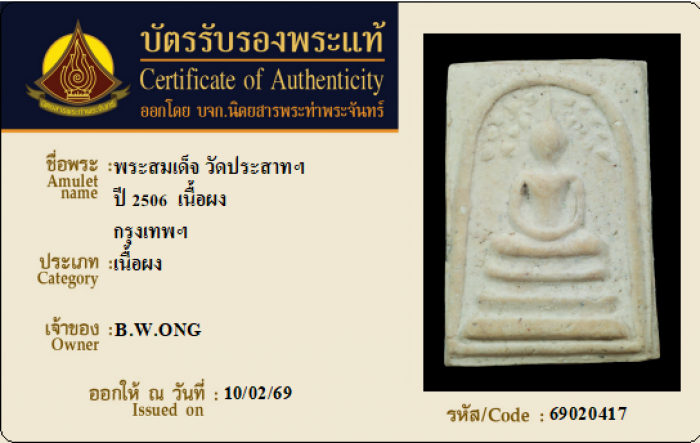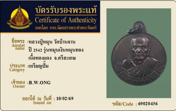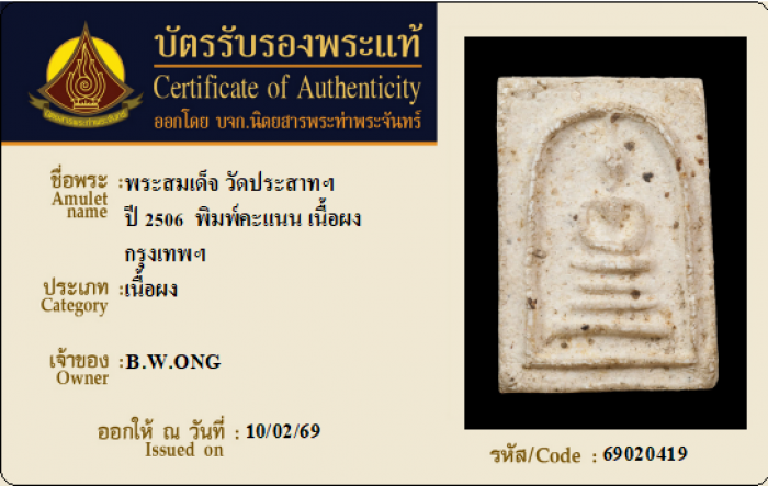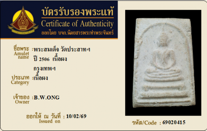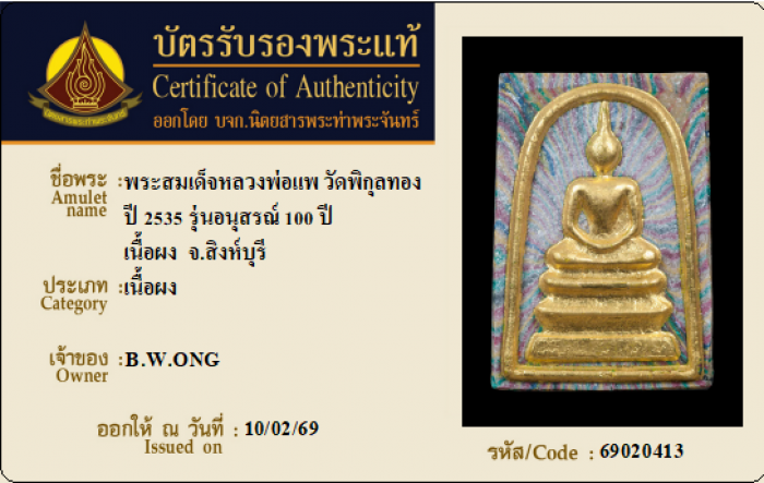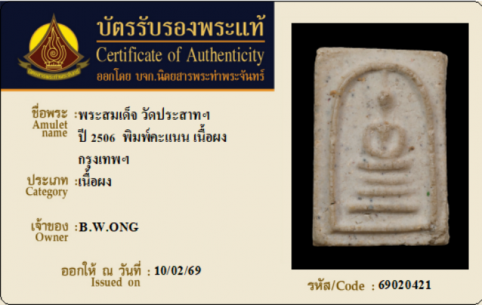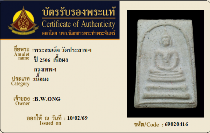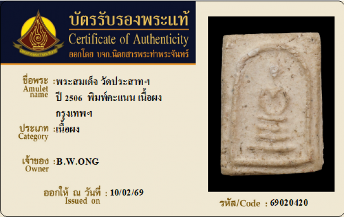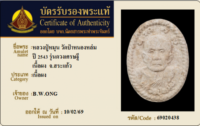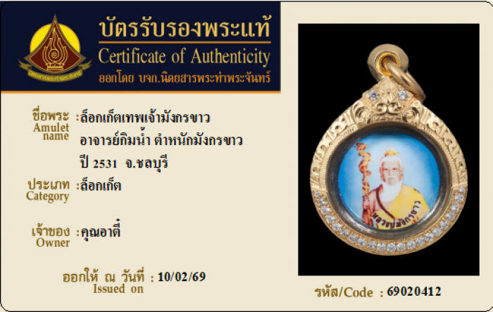ค้นหาใบการันตีพระแท้