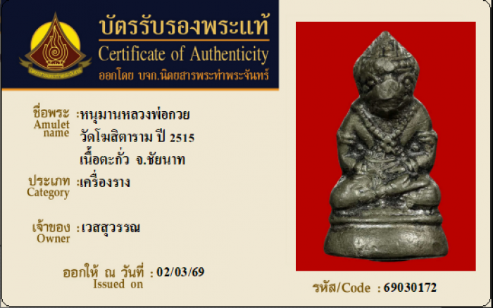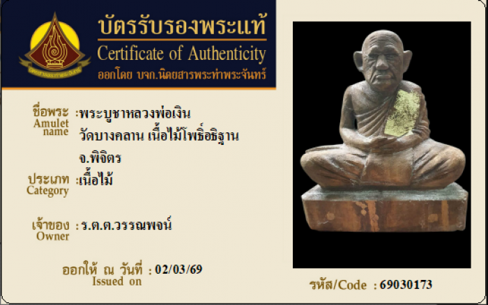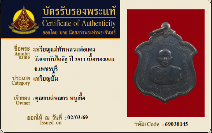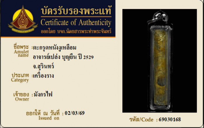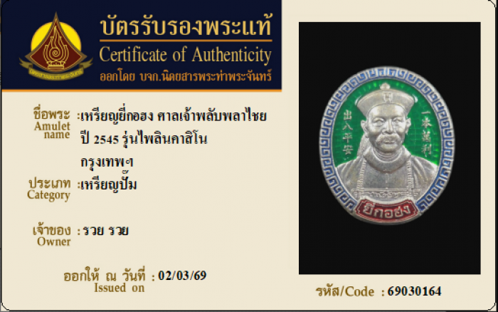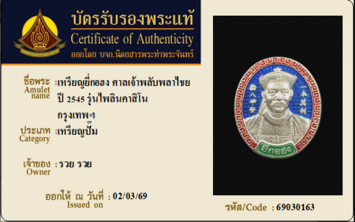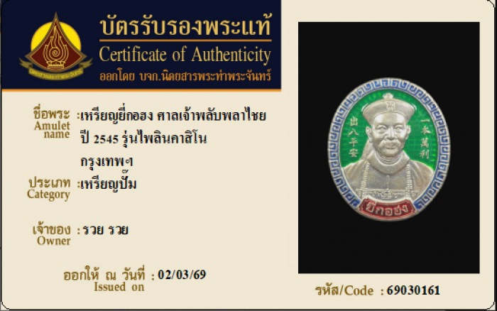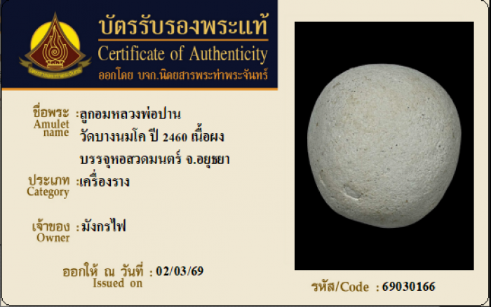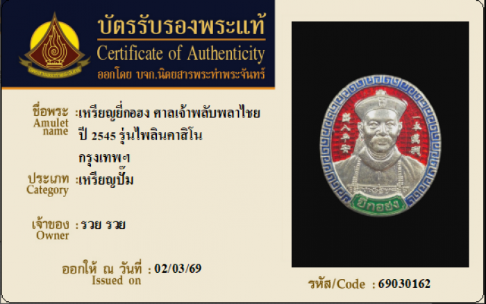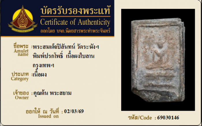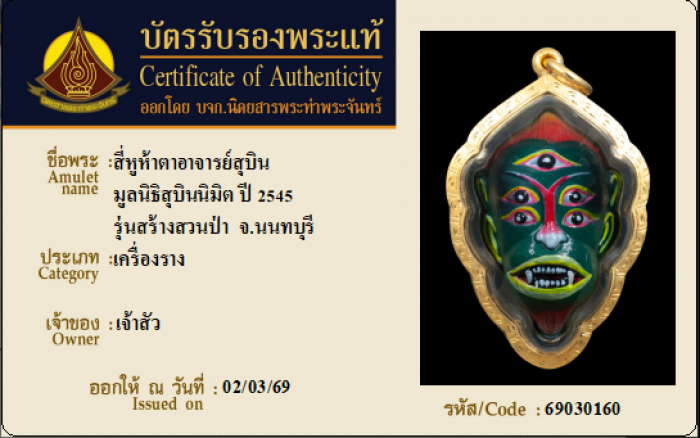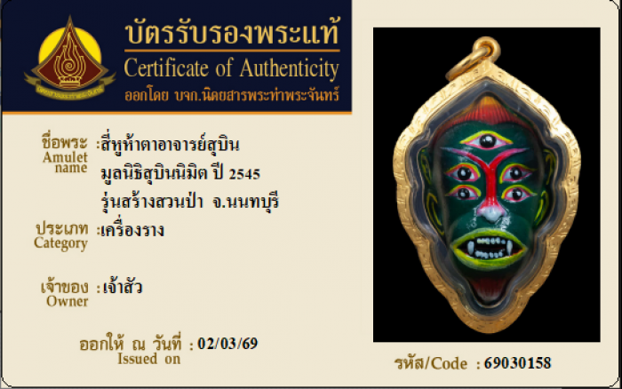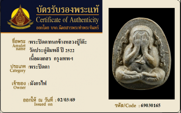 ค้นหาใบการันตีพระแท้