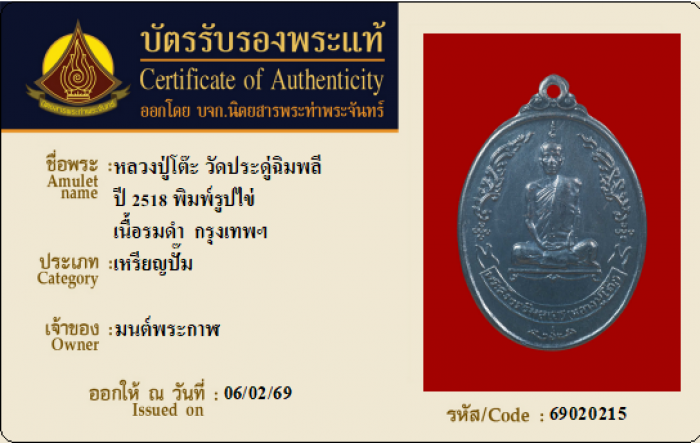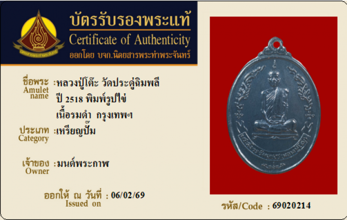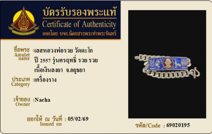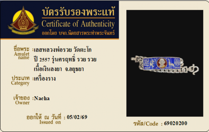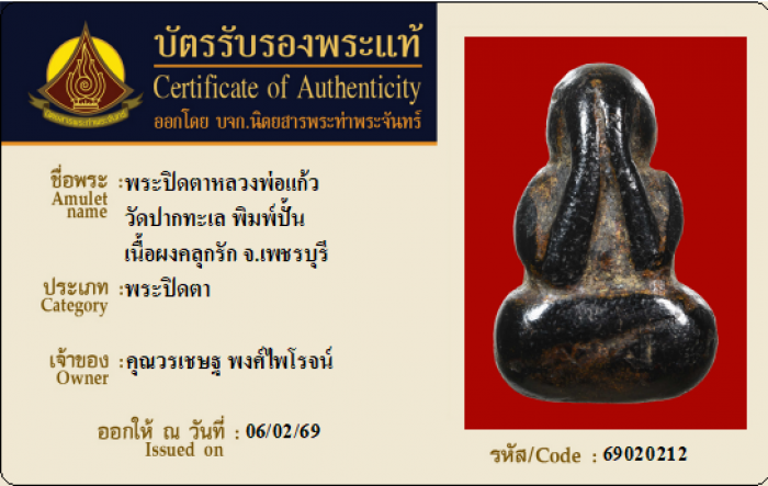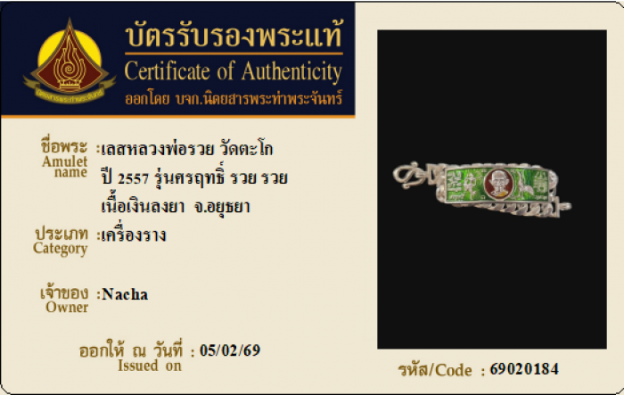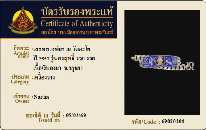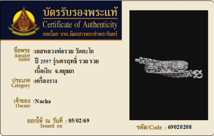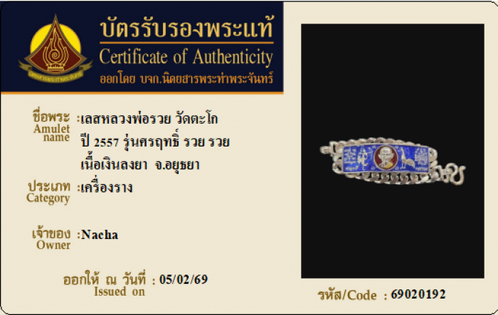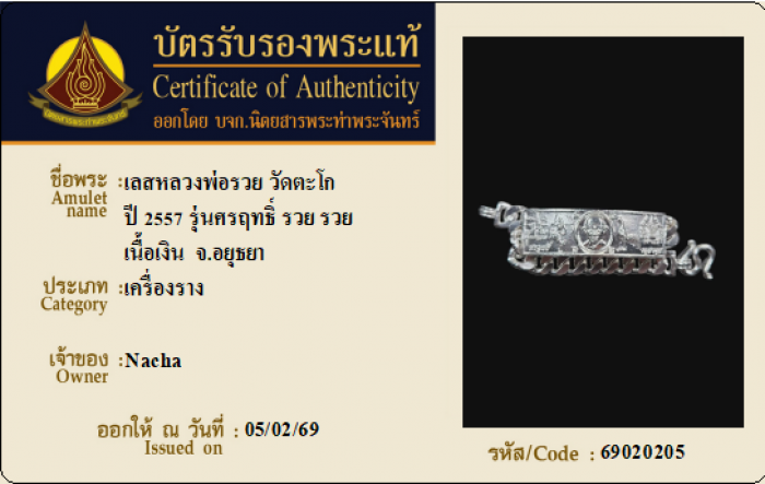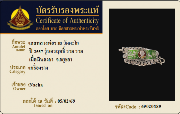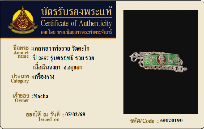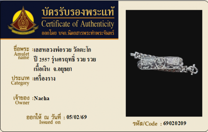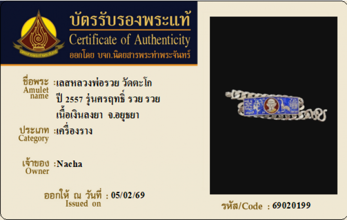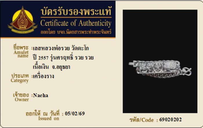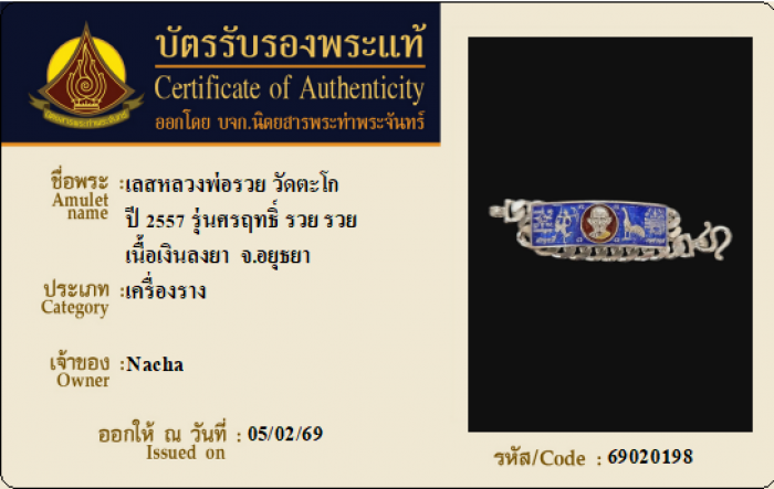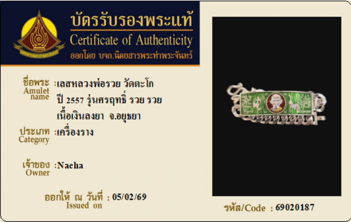 ค้นหาใบการันตีพระแท้