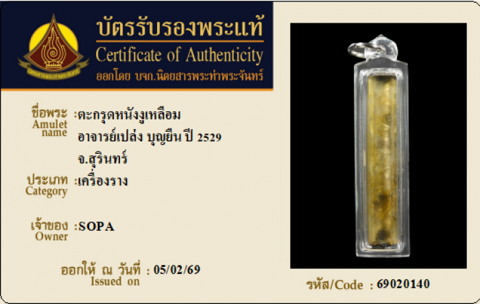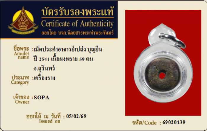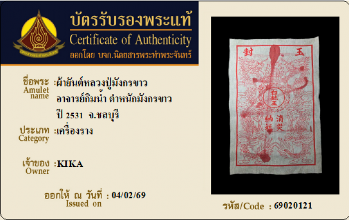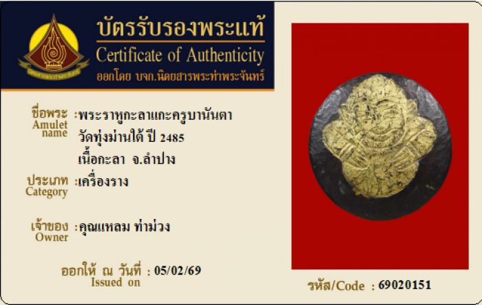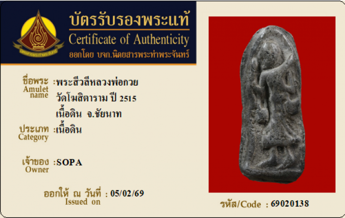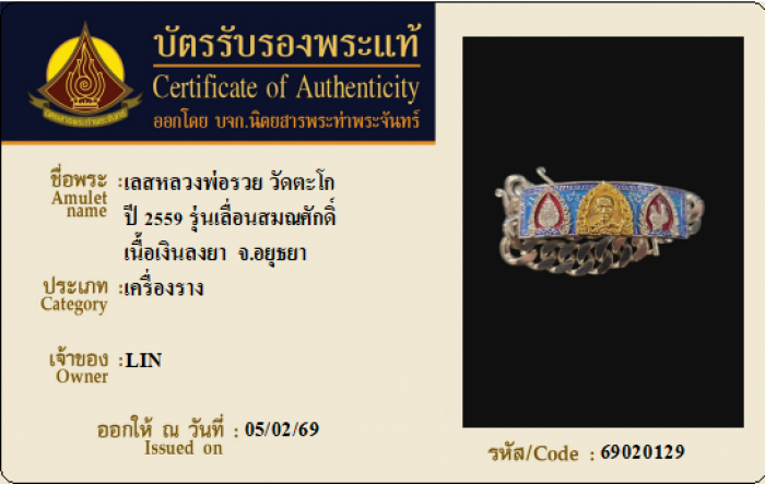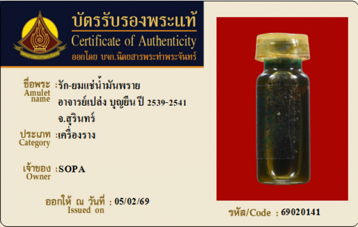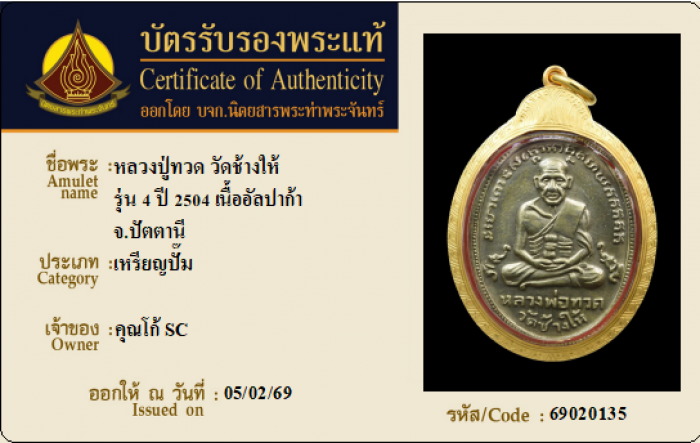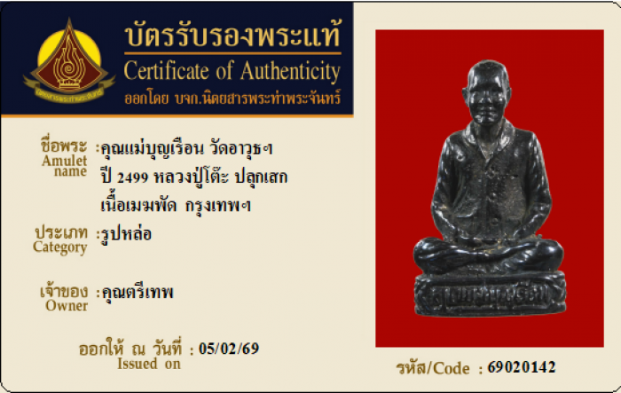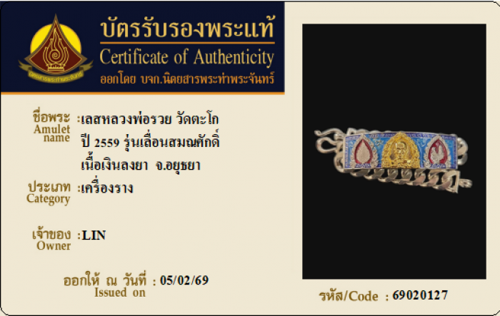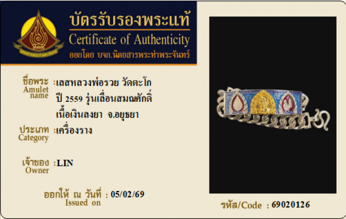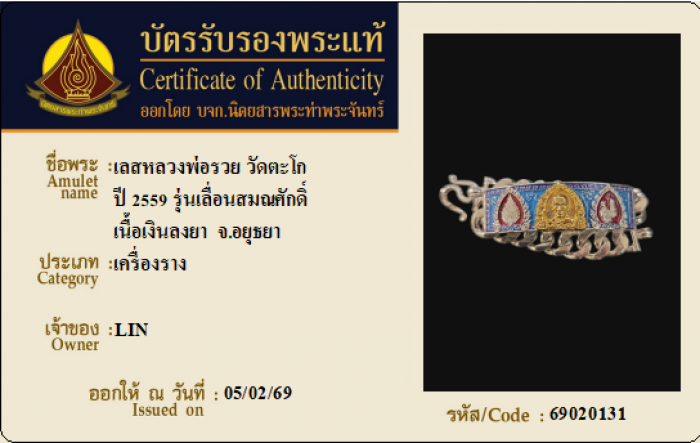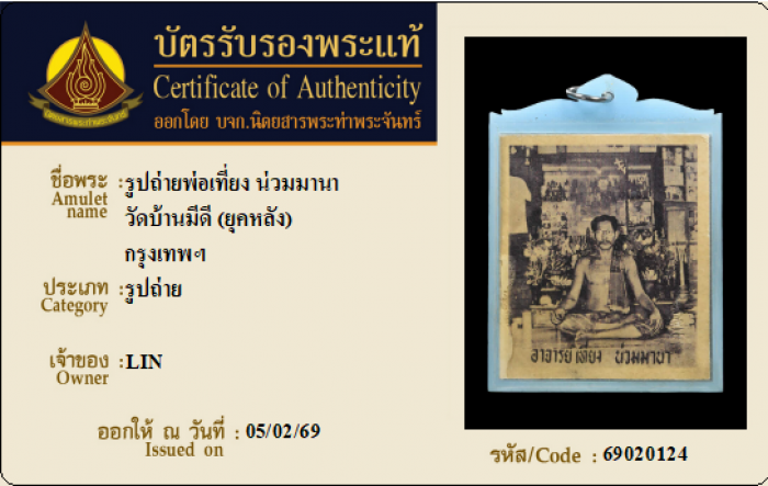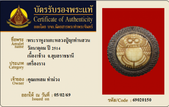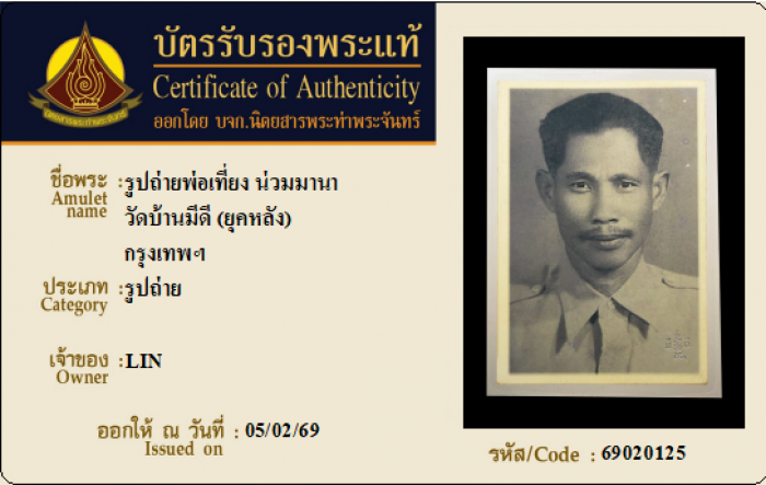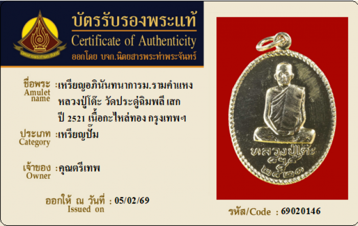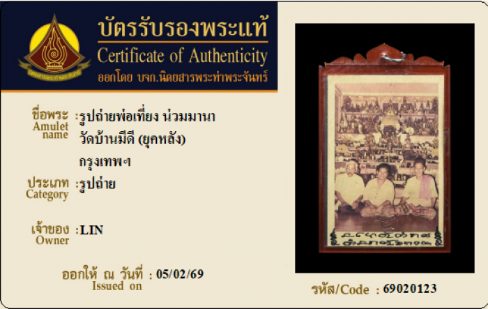 ค้นหาใบการันตีพระแท้