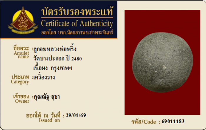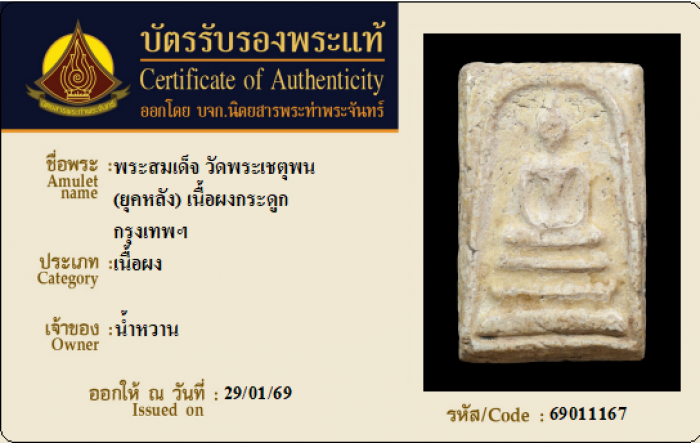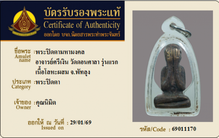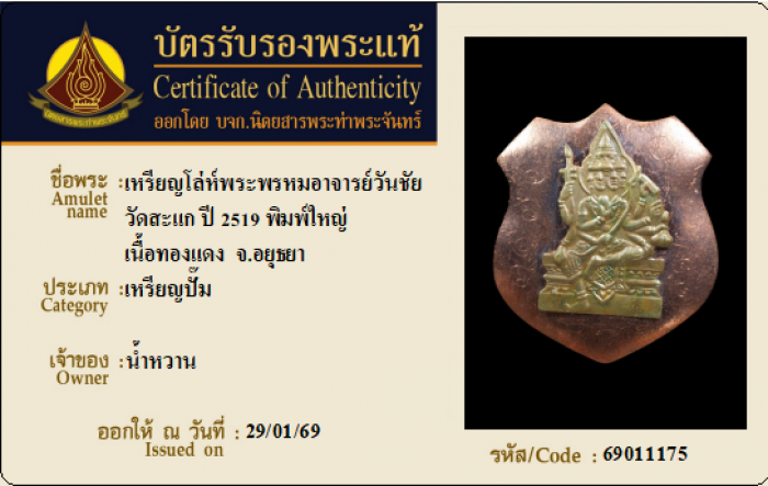 ค้นหาใบการันตีพระแท้