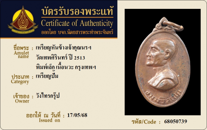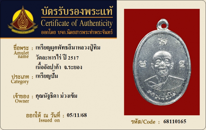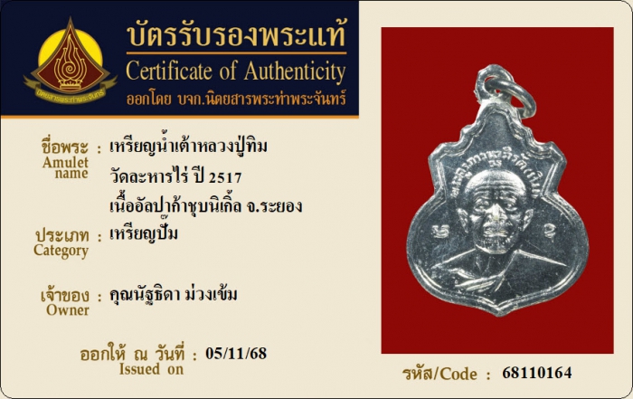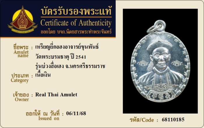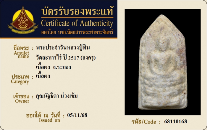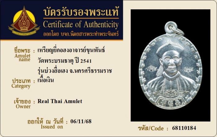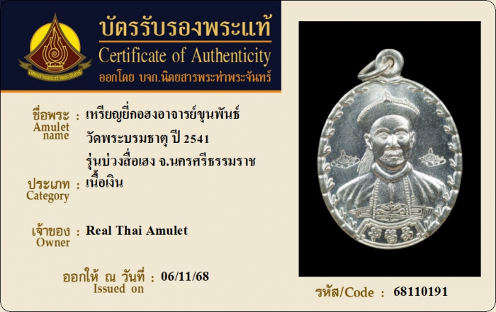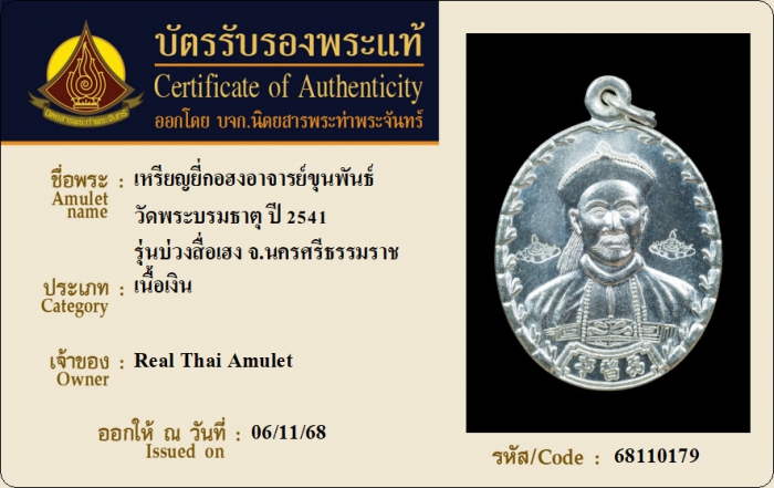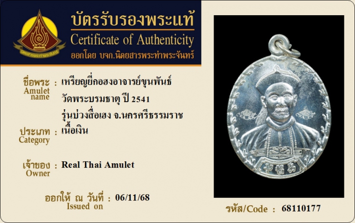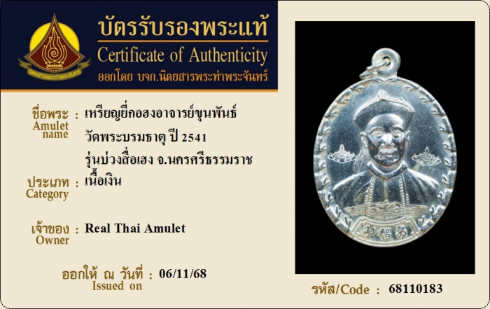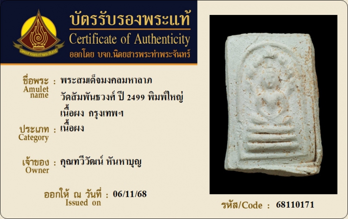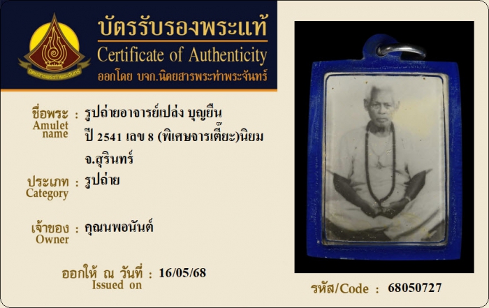 ค้นหาใบการันตีพระแท้
