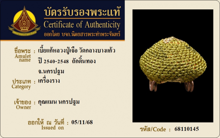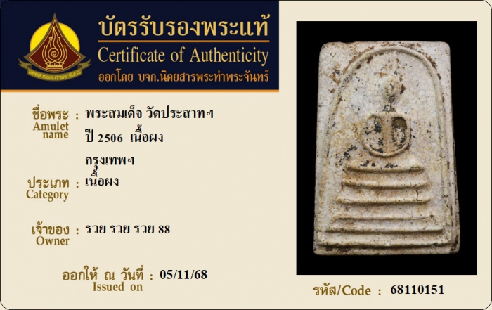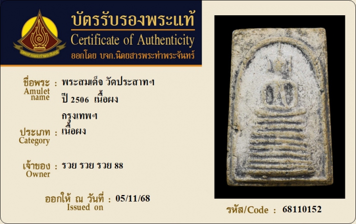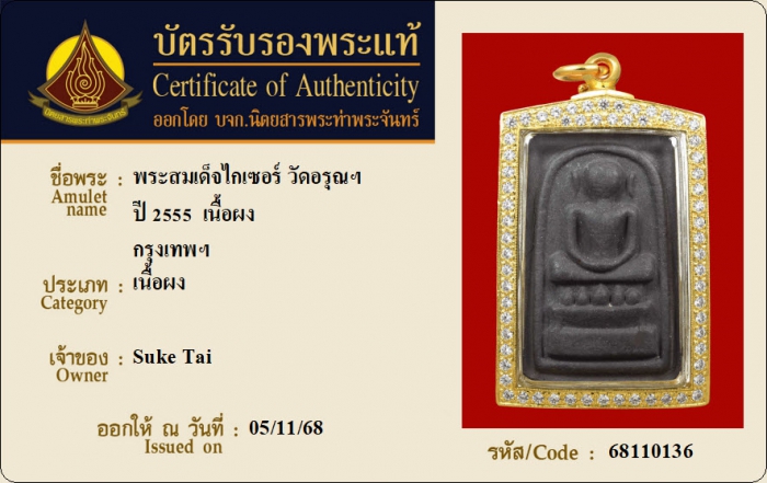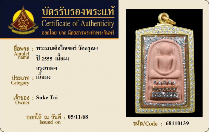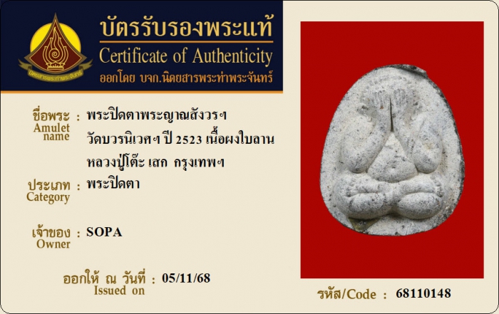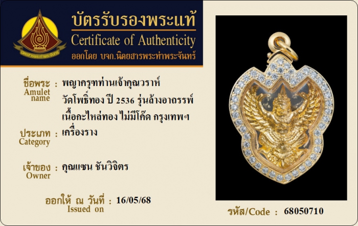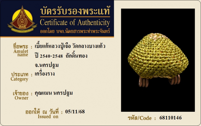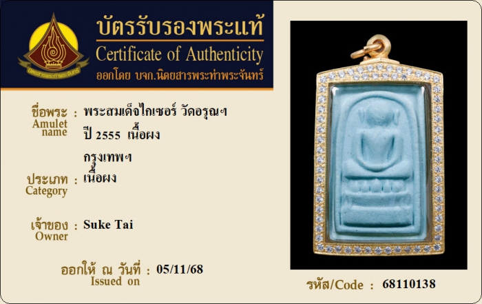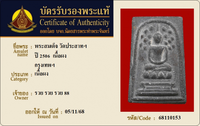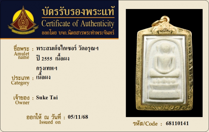 ค้นหาใบการันตีพระแท้