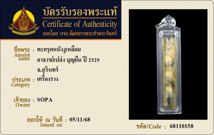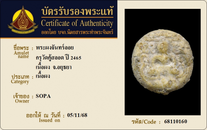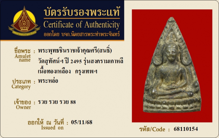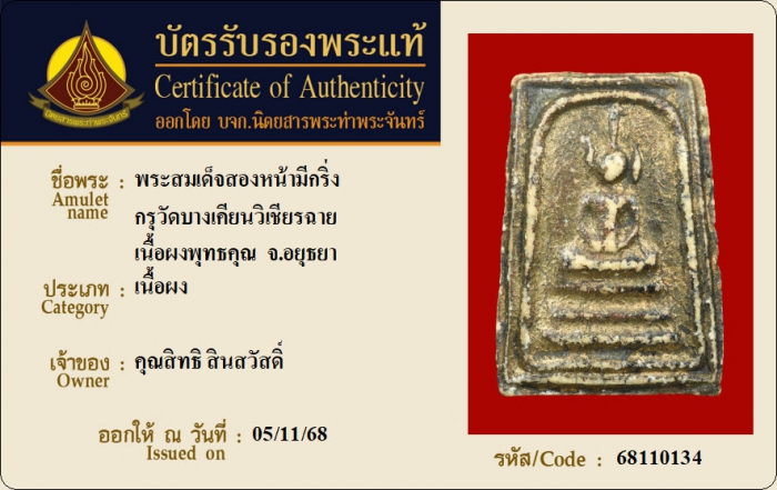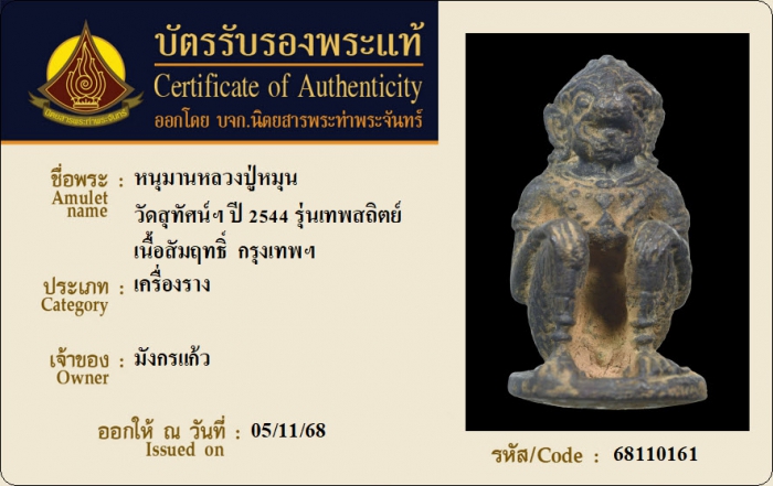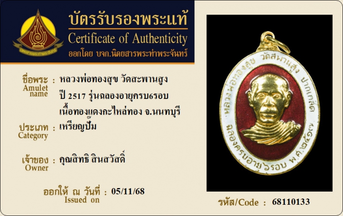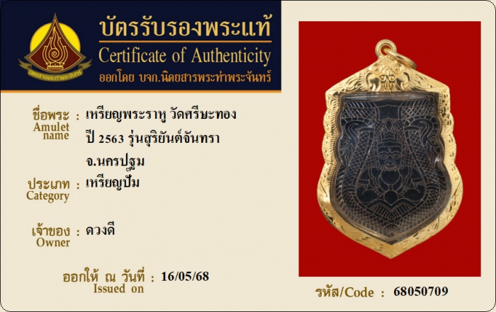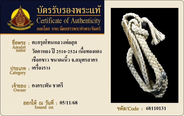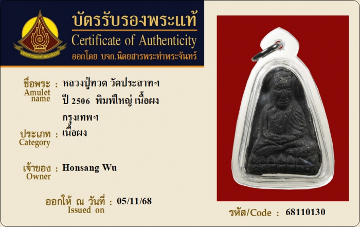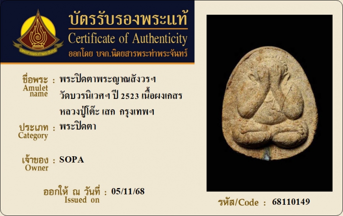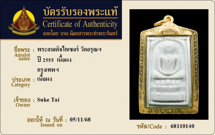ค้นหาใบการันตีพระแท้