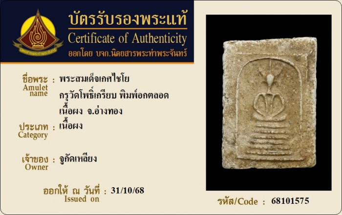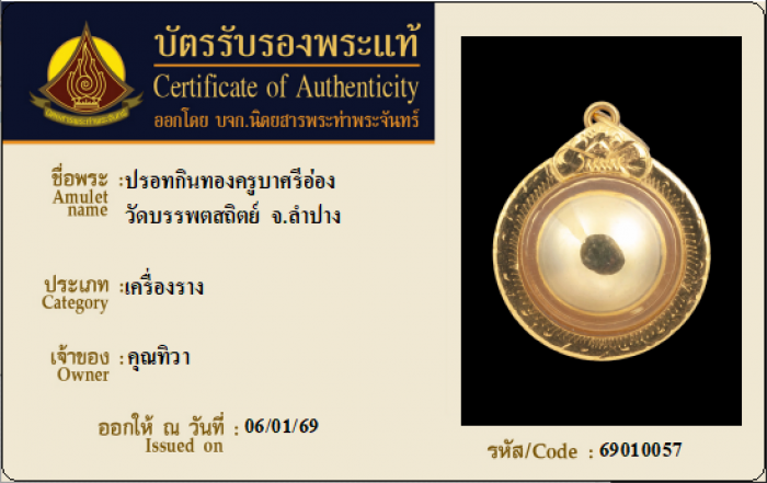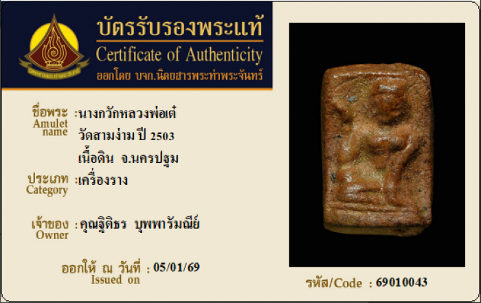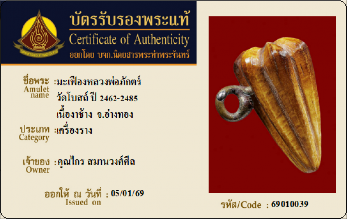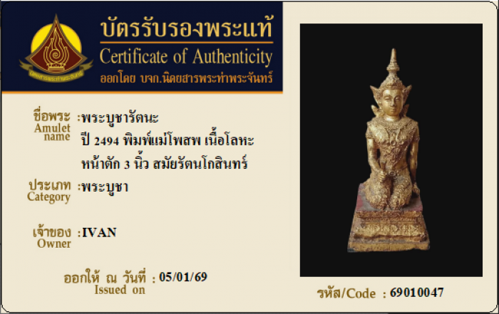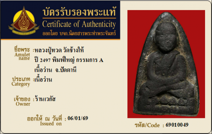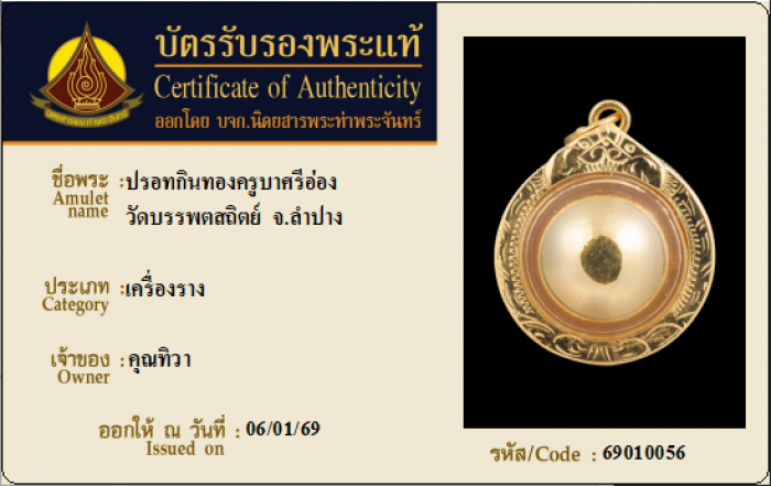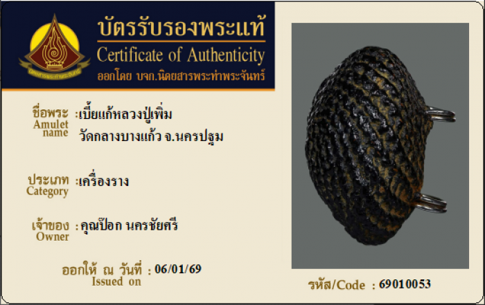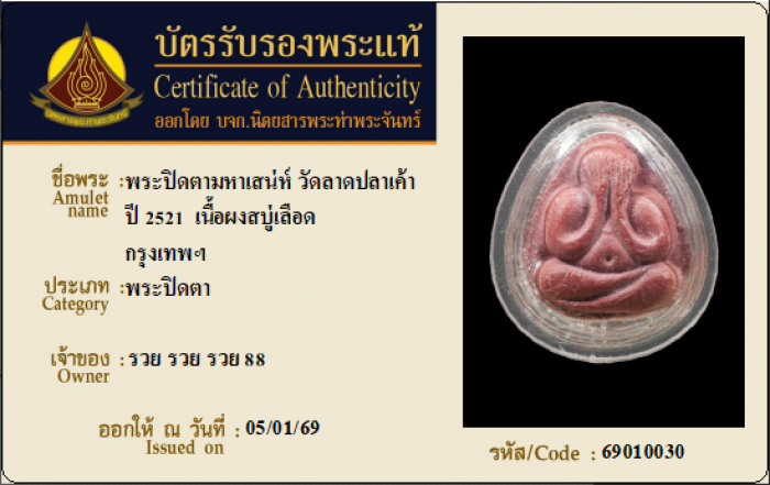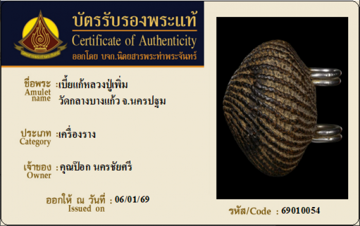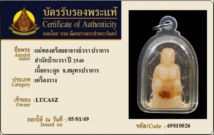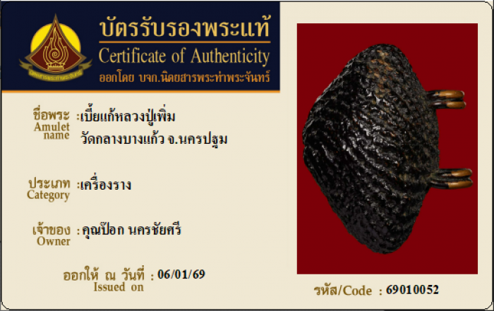 ค้นหาใบการันตีพระแท้