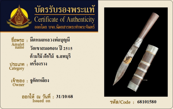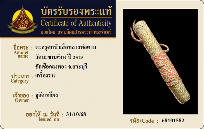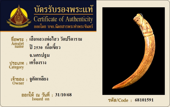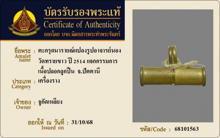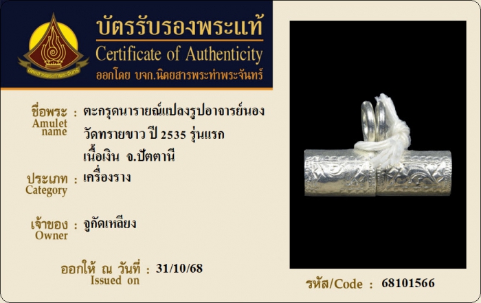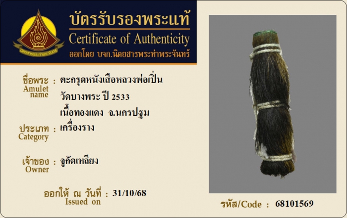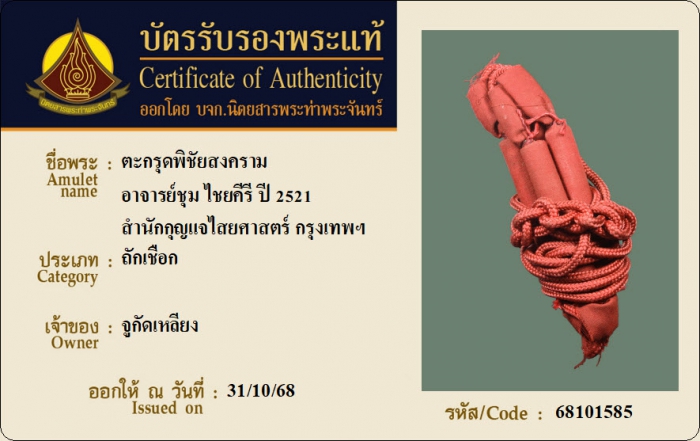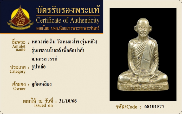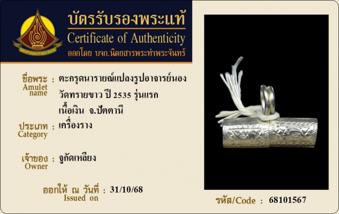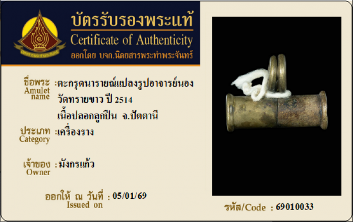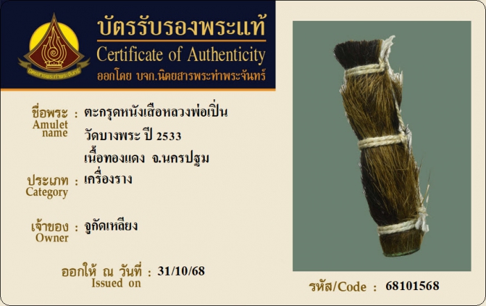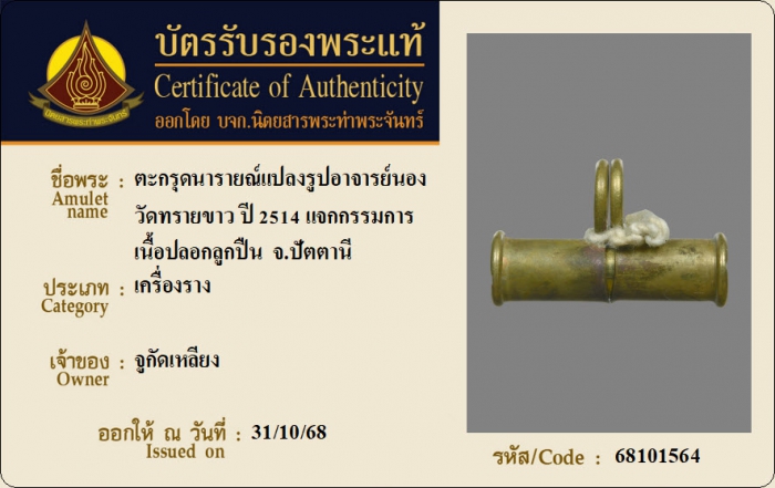 ค้นหาใบการันตีพระแท้
