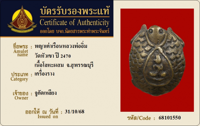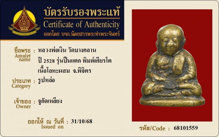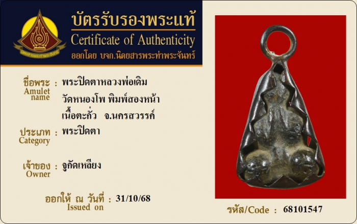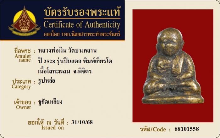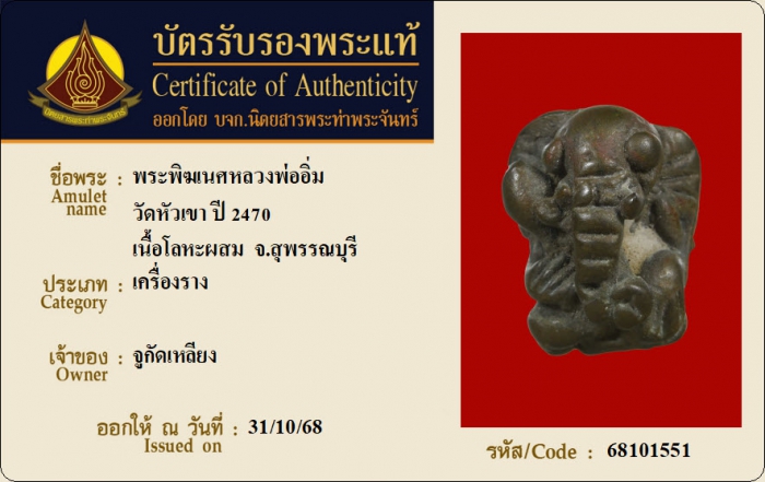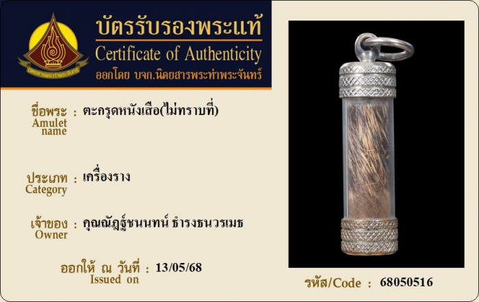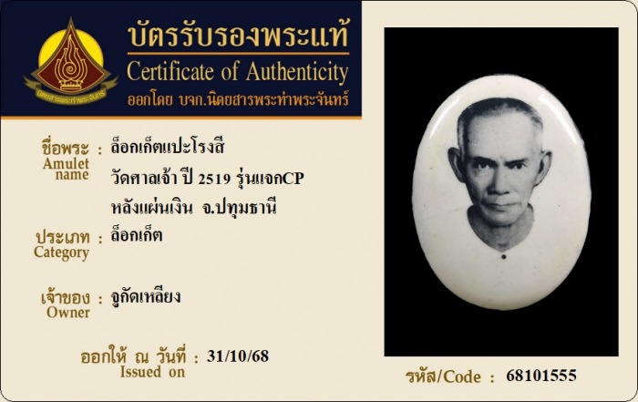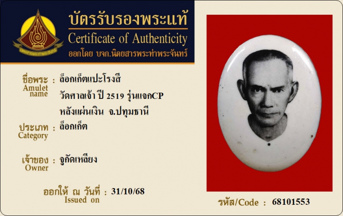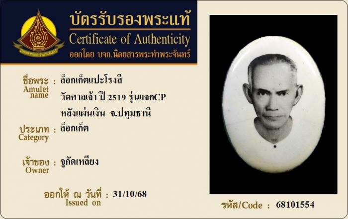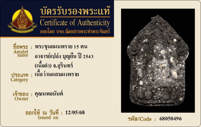 ค้นหาใบการันตีพระแท้