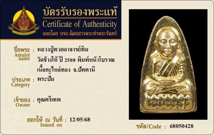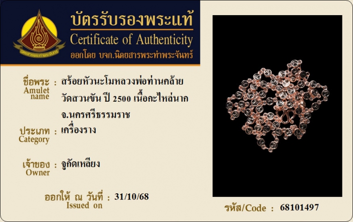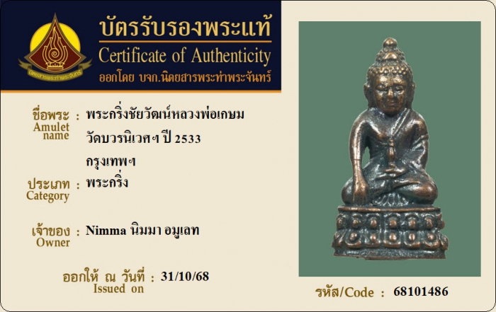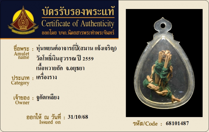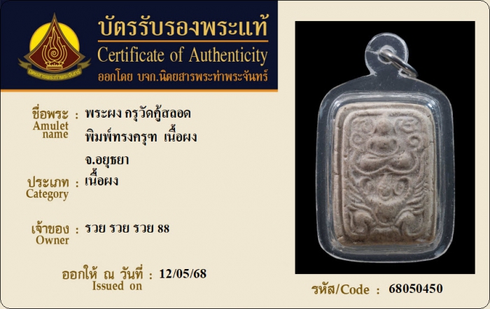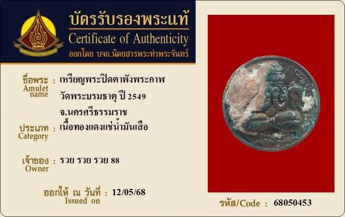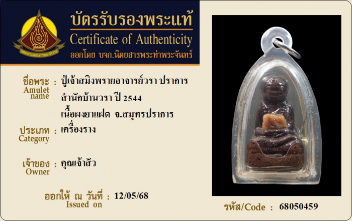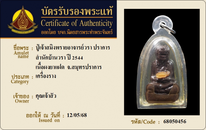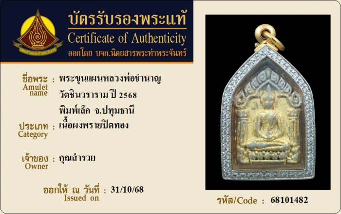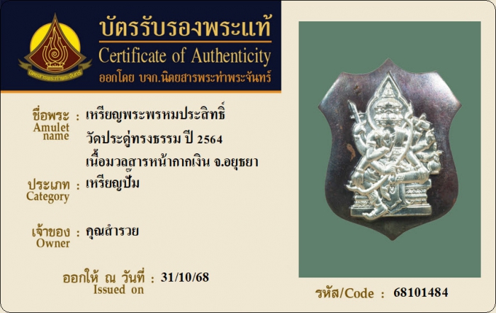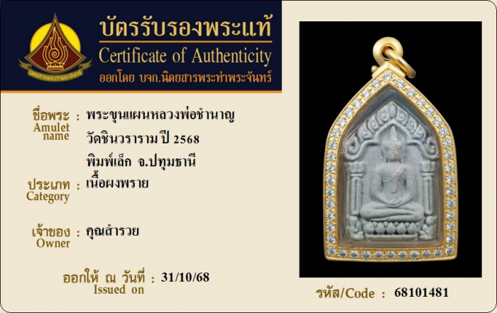 ค้นหาใบการันตีพระแท้