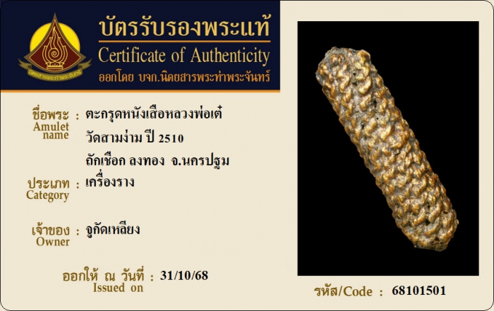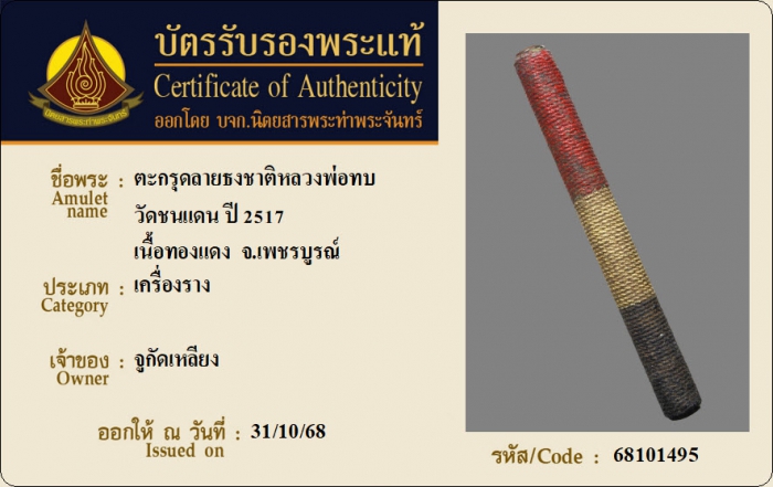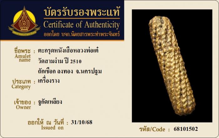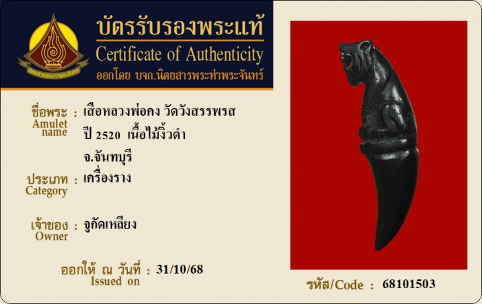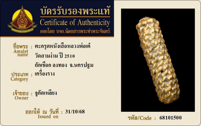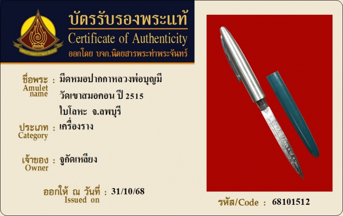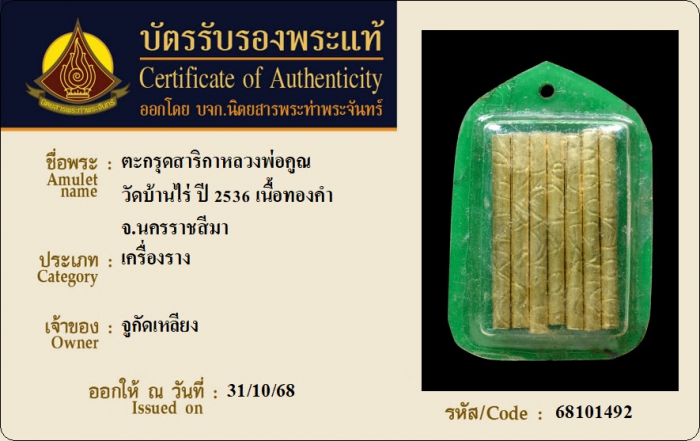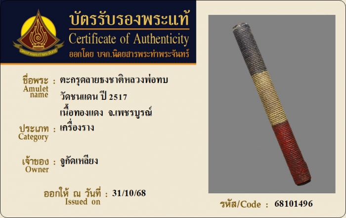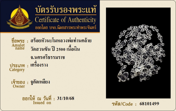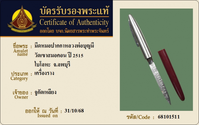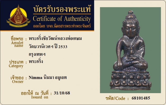 ค้นหาใบการันตีพระแท้